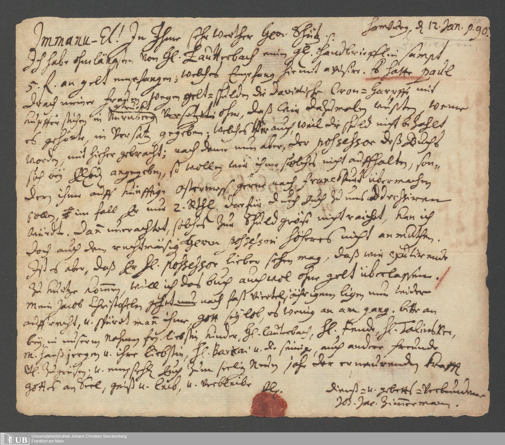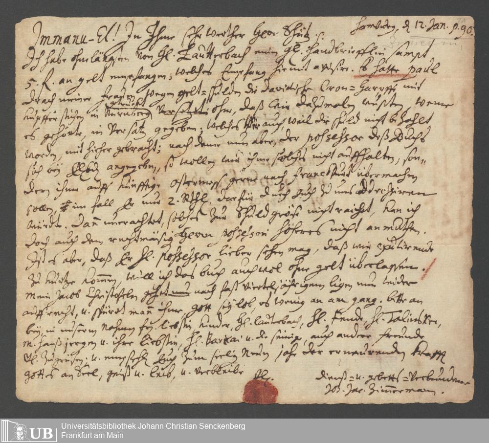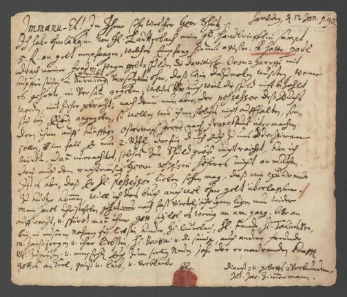 Brief an Doctor Schütz, 31. Dezember 1689