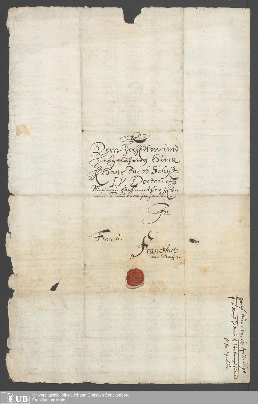 Monsieur Jean Jaque Schütz, jete fort renommé, 5.3.1690