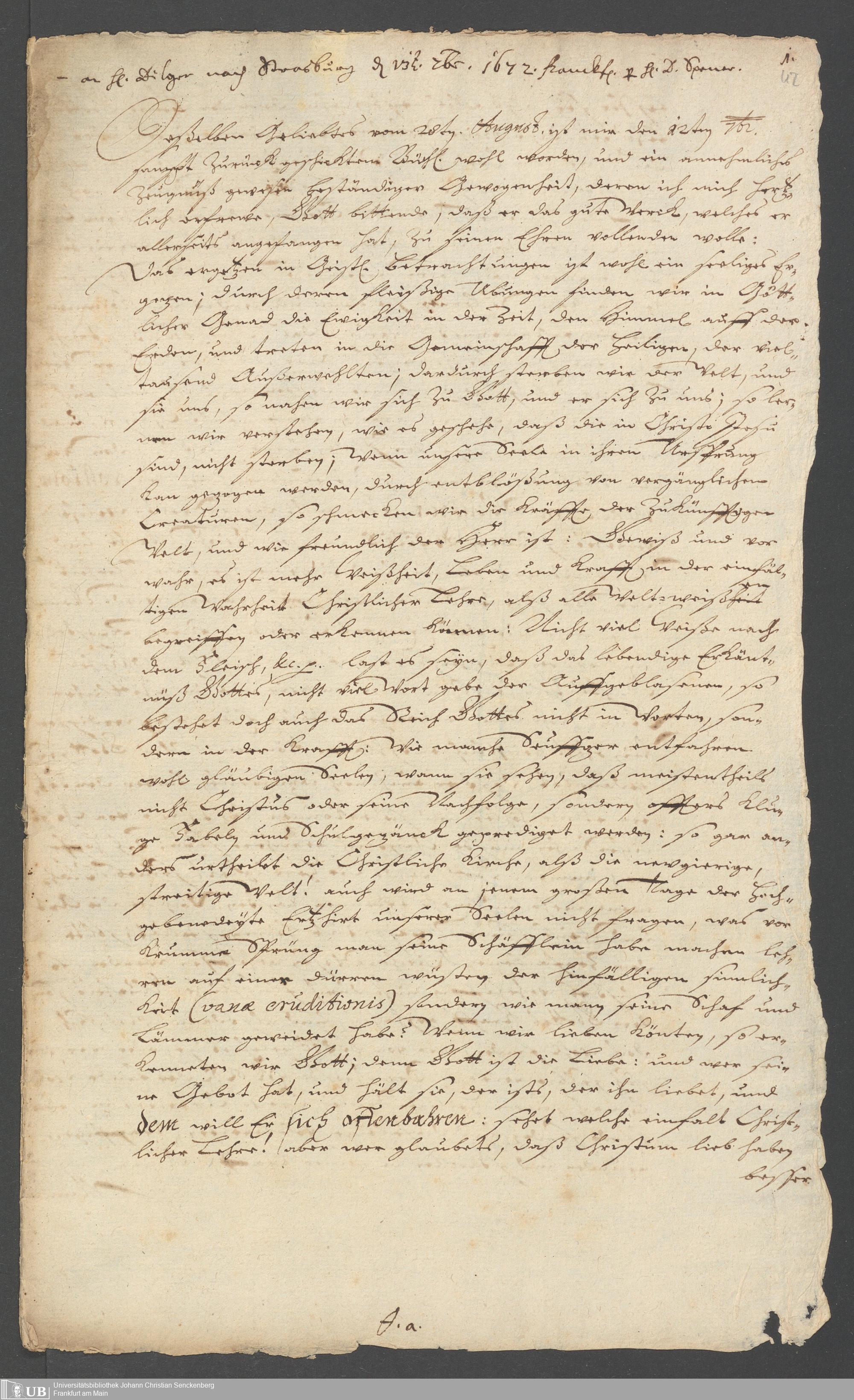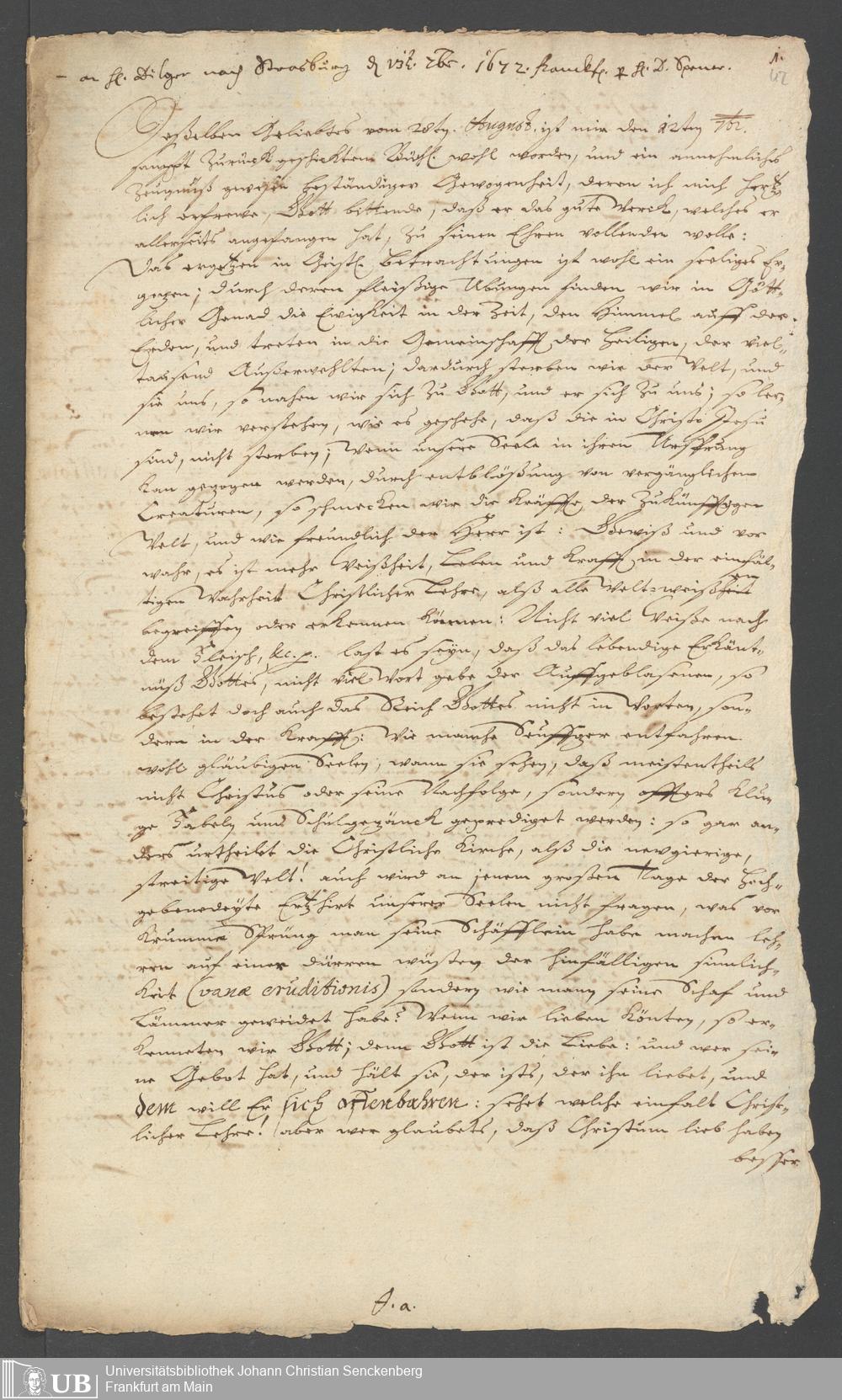 Brief an Doctor Schütz, 31. Dezember 1689