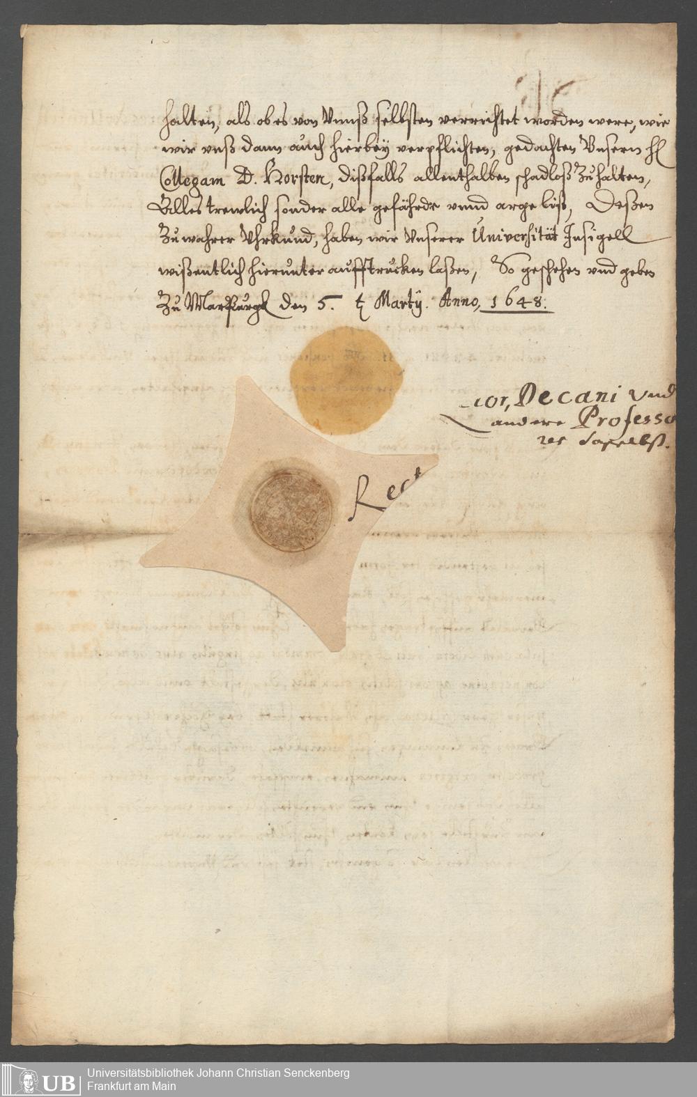 Na 80 Nachlass Johann Daniel Horst, 13 - Aufzeichnungen und Briefe zur Tätigkeit als Professor und Rektor
