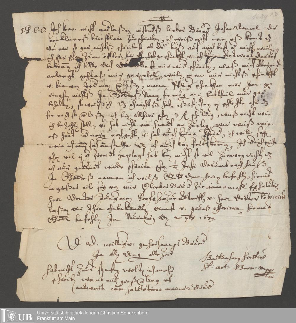 Universitätszeugnis für Georg Wolff, Gießen 1612