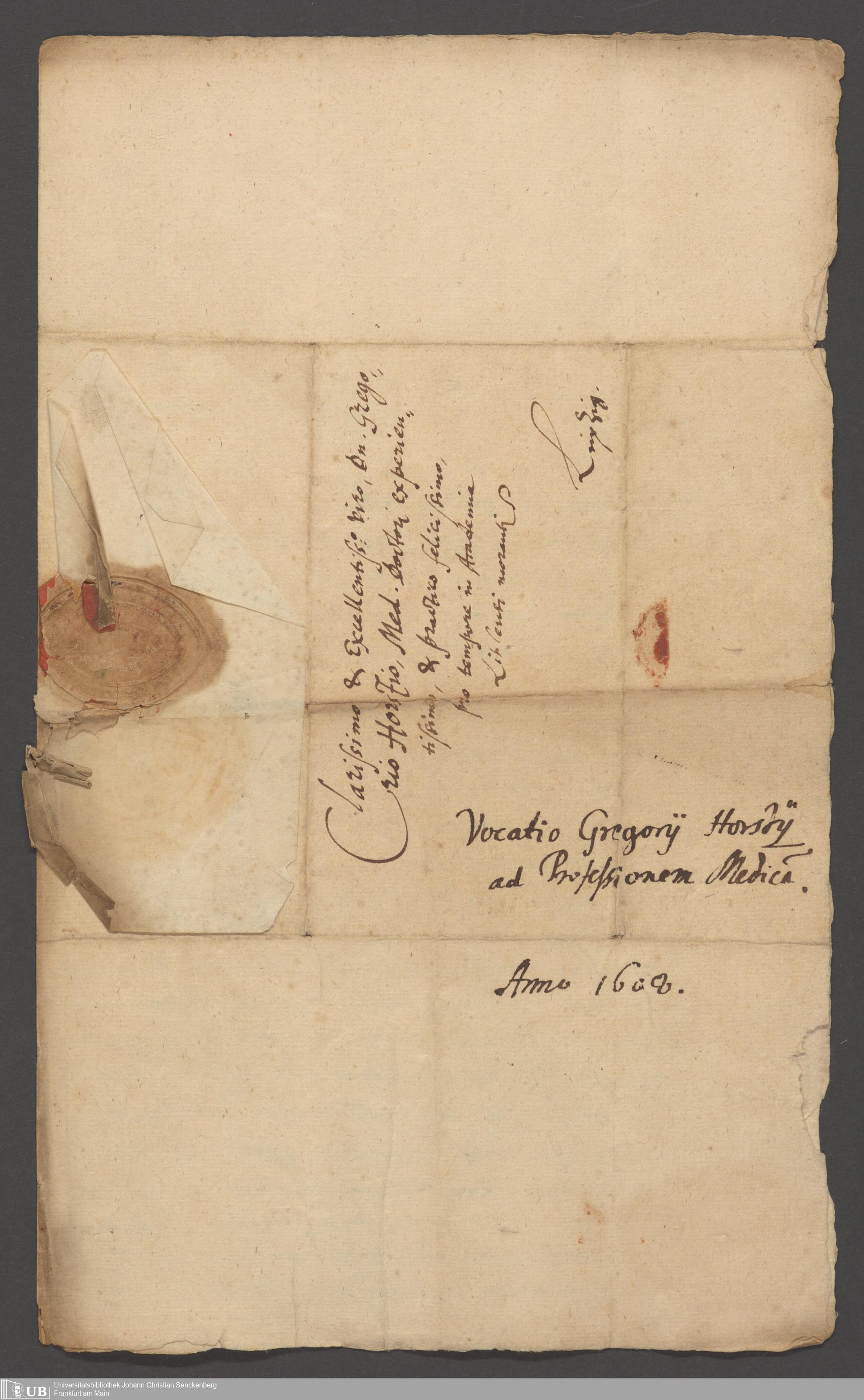 Vocatio Gregory Horst ad Professionem Medica, Anno 1608