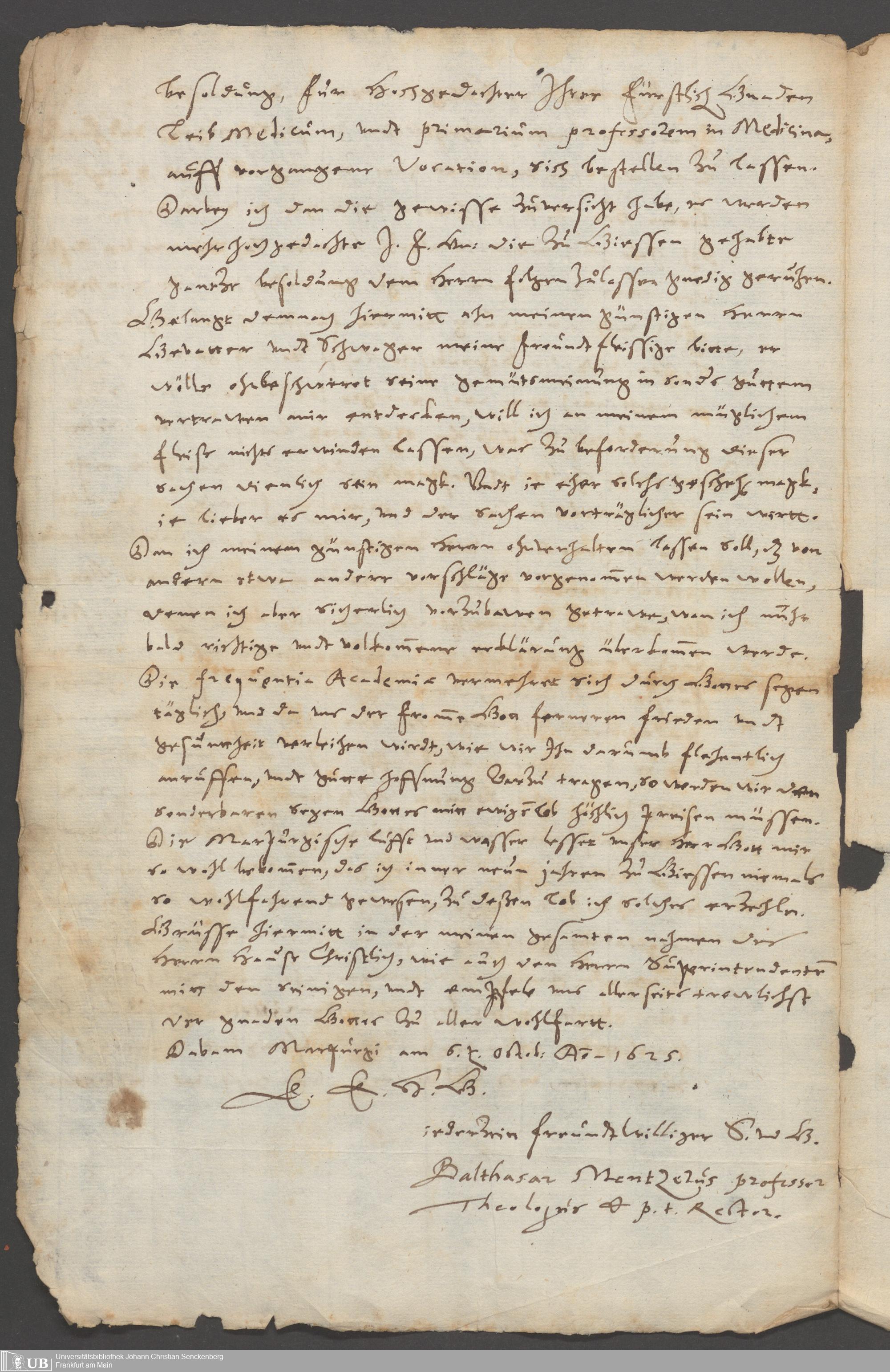 Schreiben des Landgrafen von Hessen 1632