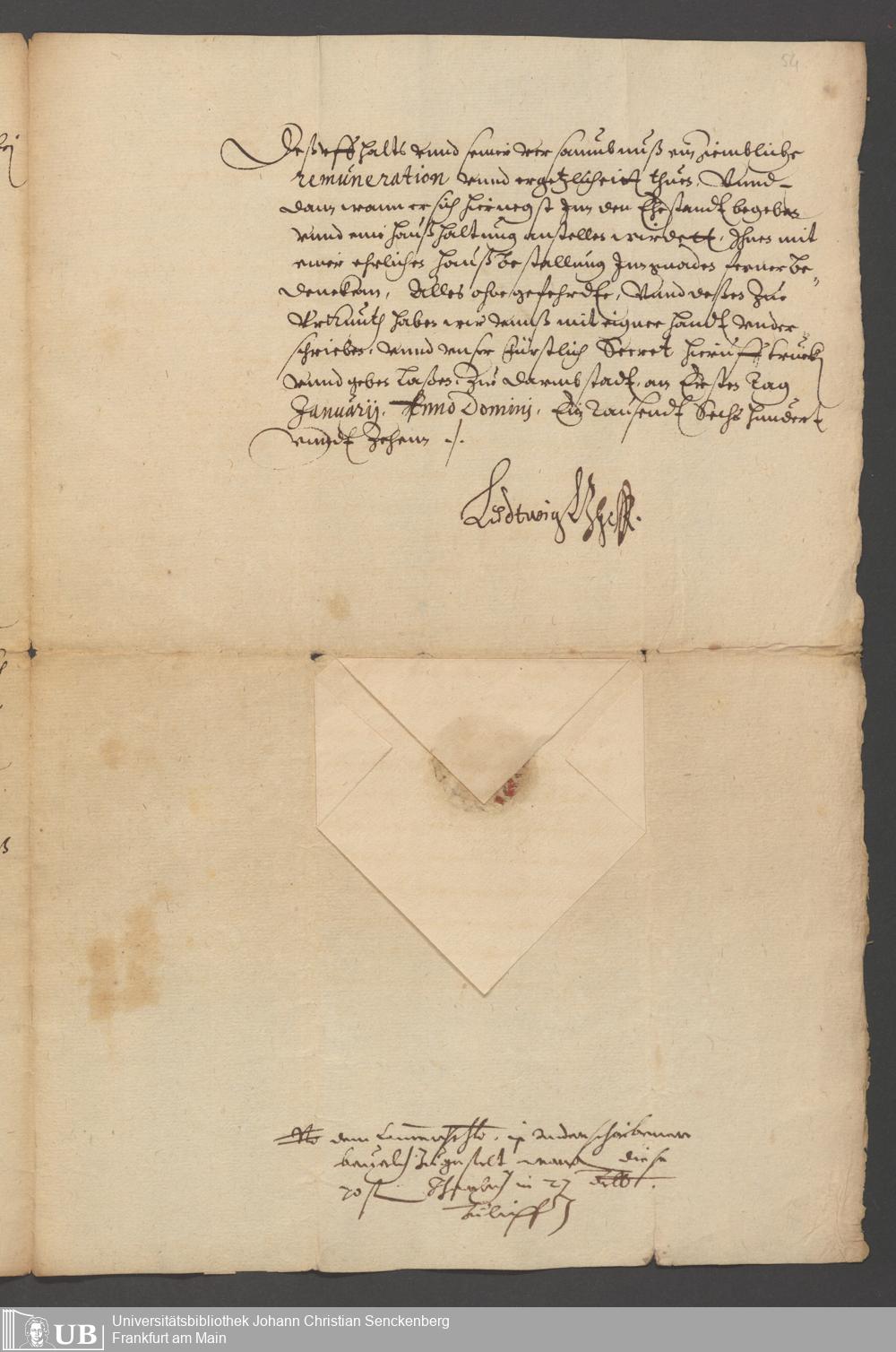 Verfügung des Landgrafen Ludwig von Hessen. Darmstadt 1609, die Universität Gießen betreffend
