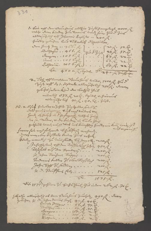 Verlassenschaft Gregor Horst. Zinsschulden, Silbergeschirr. 1636