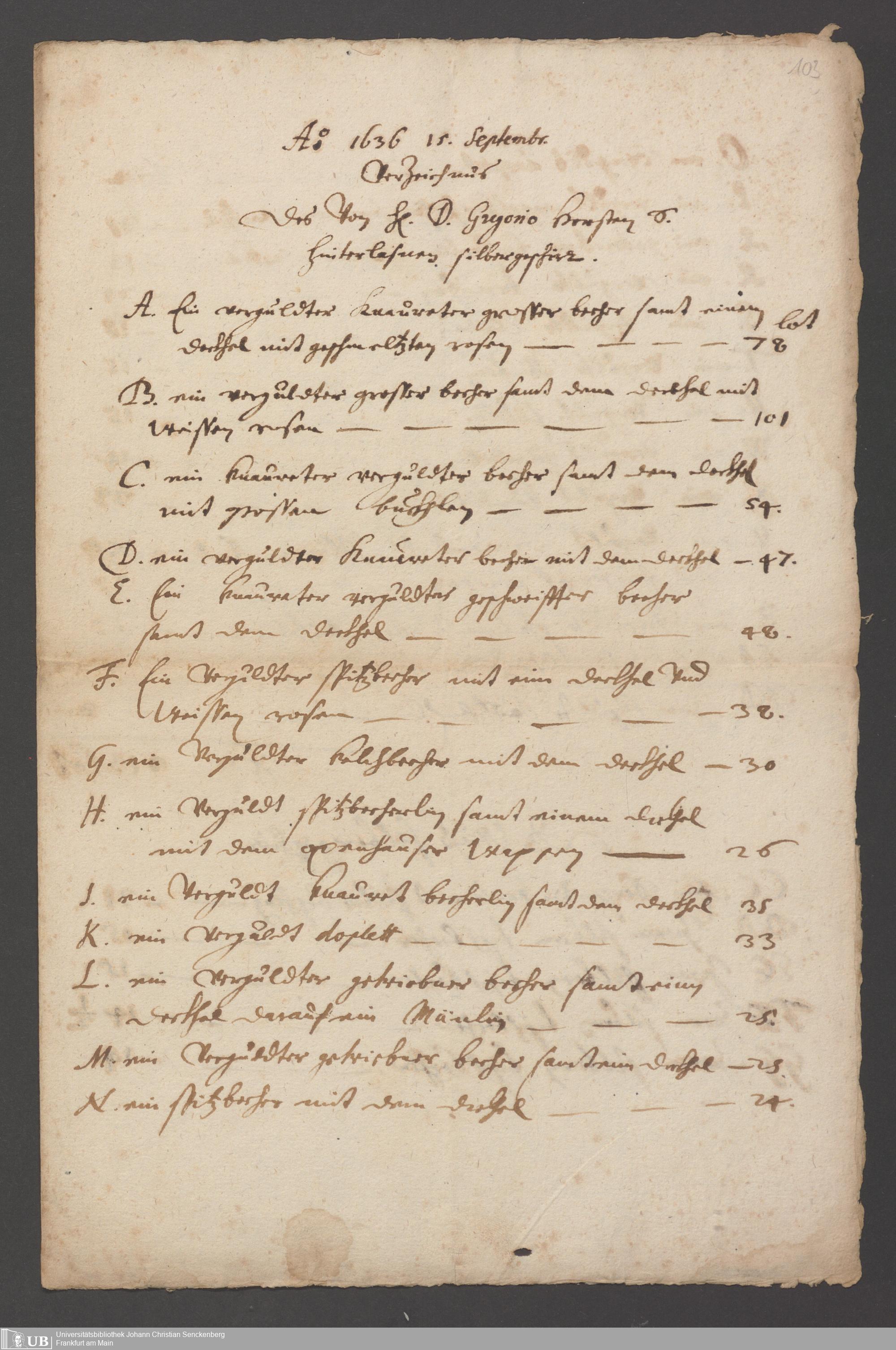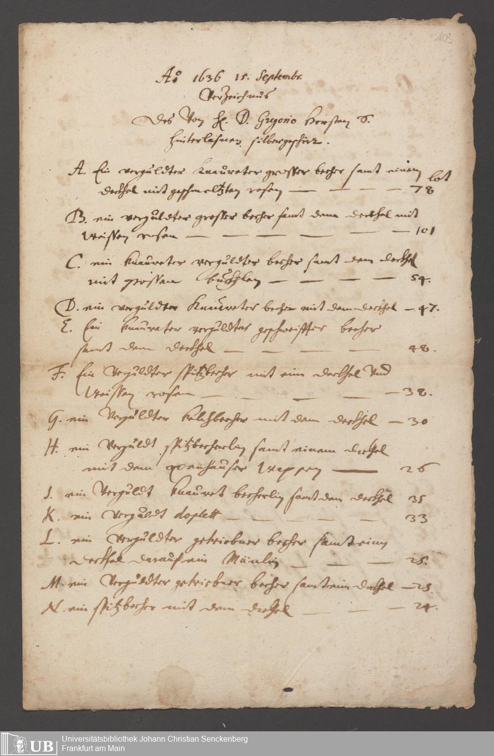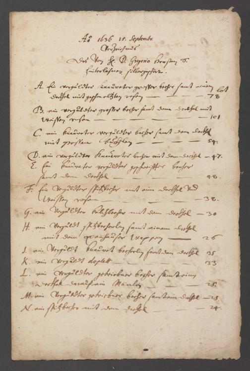 Verlassenschaft Gregor Horst. Zinsschulden, Silbergeschirr. 1636