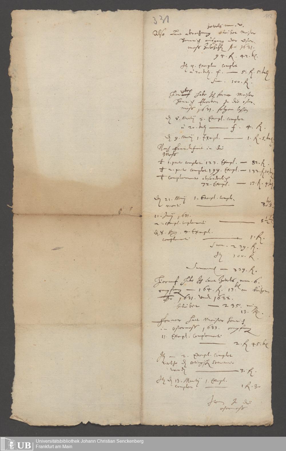 Verlassenschaft Gregor Horst. Zinsschulden, Silbergeschirr. 1636