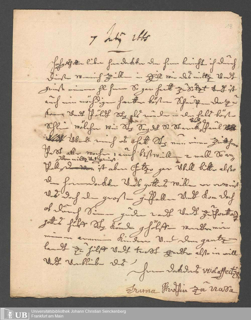 Na 80 Nachlass Johann Daniel Horst, 5 - Briefe der Gräfin von Nassau-Saarbrücken an Horst