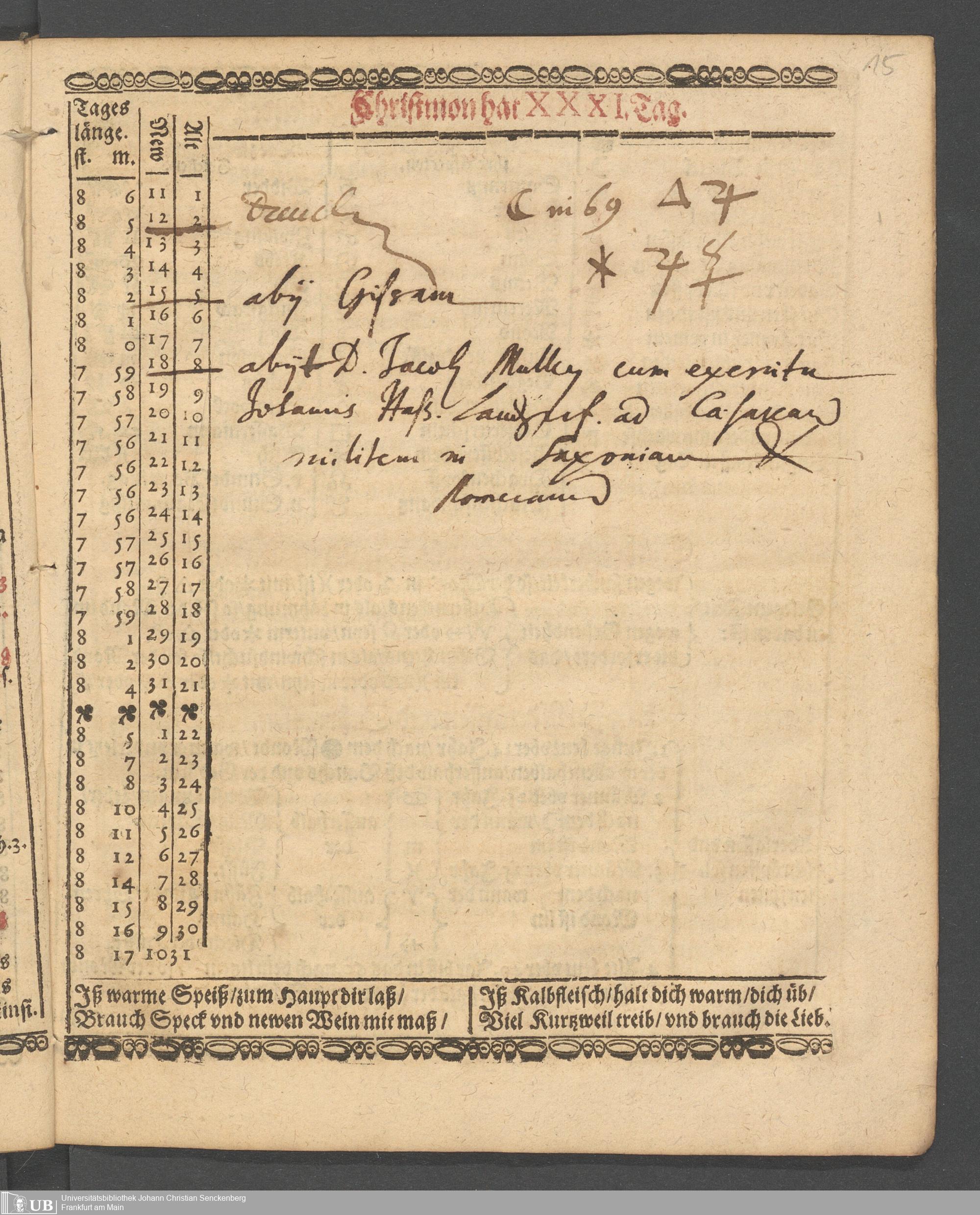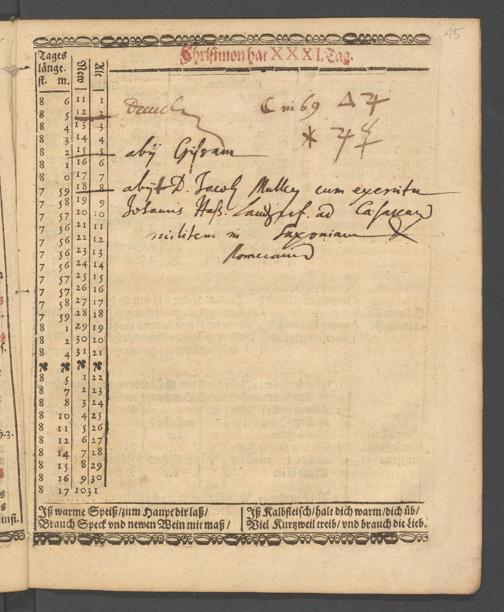 Schreibkalender mit Tagebuchanmerkungen Horsts 1636