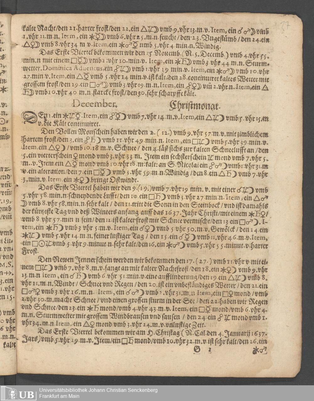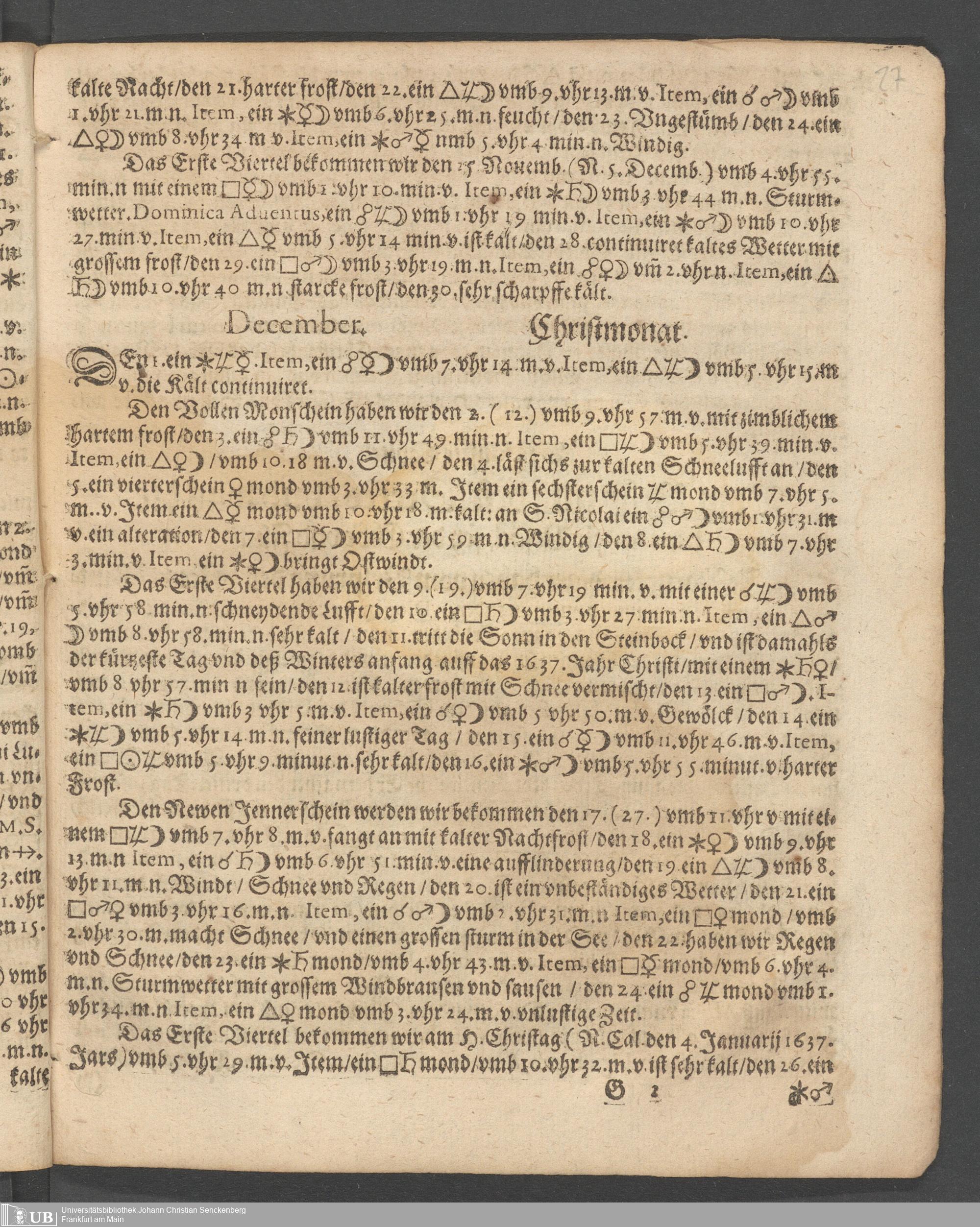 Schreibkalender mit Tagebuchanmerkungen Horsts 1636