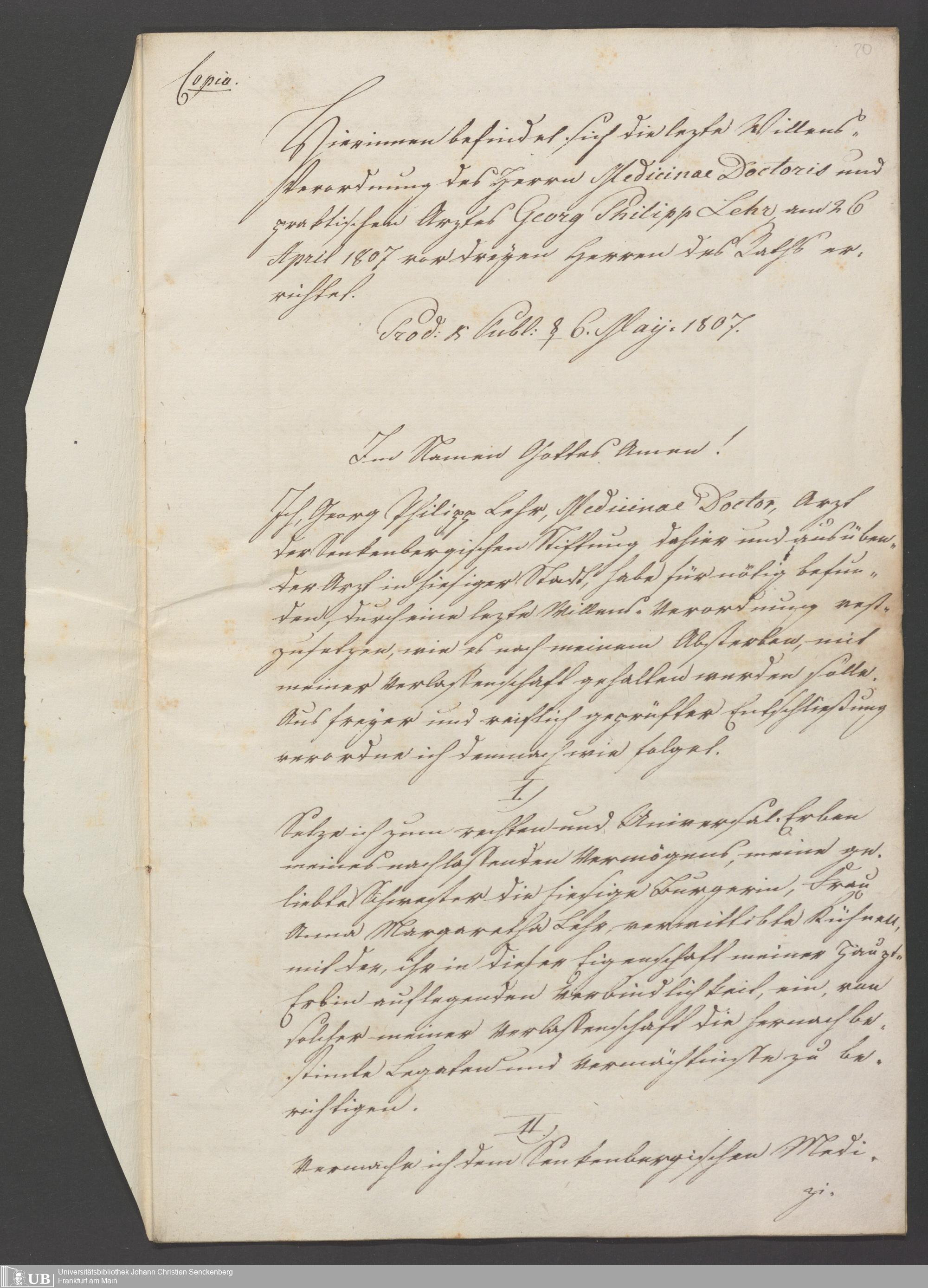 Nachlass Johann Christian Senckenberg