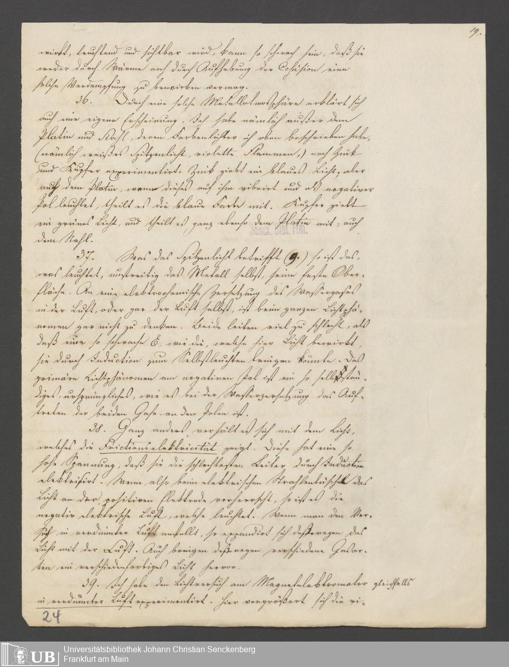 Korrekturabzug: Ueber das Verhältniss der elektrischen Polarität zu Licht und Wärme, 30. August 1845