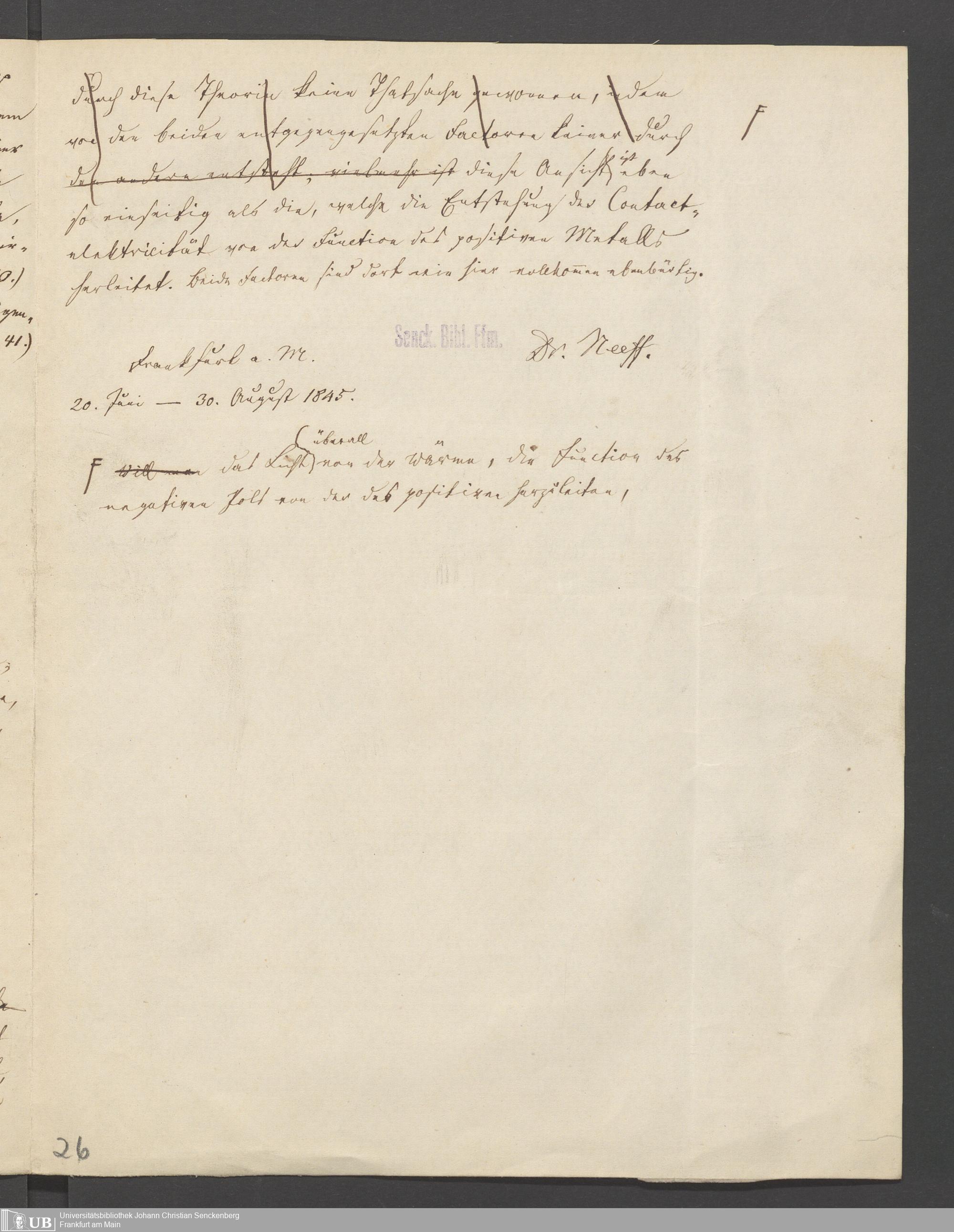 Korrekturabzug: Ueber das Verhältniss der elektrischen Polarität zu Licht und Wärme, 30. August 1845