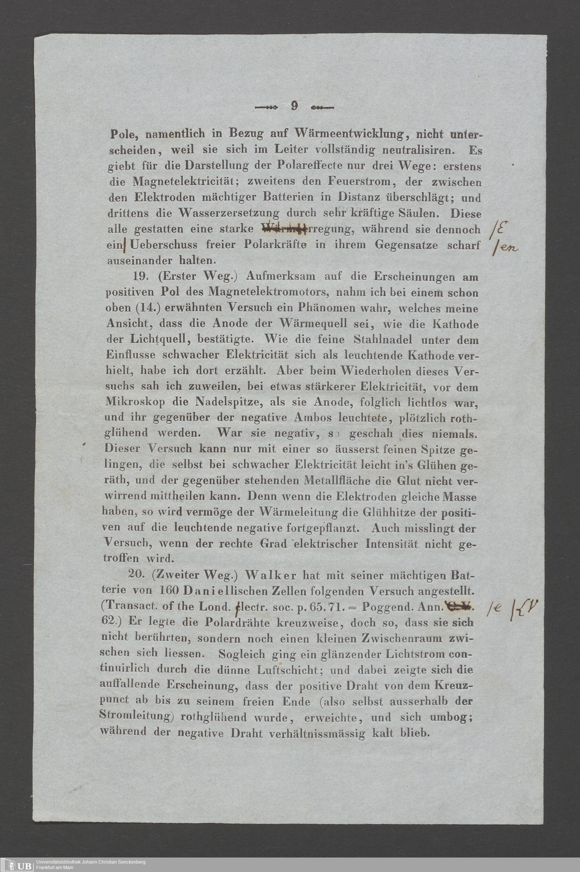Korrekturabzug: Ueber das Verhältniss der elektrischen Polarität zu Licht und Wärme, 30. August 1845