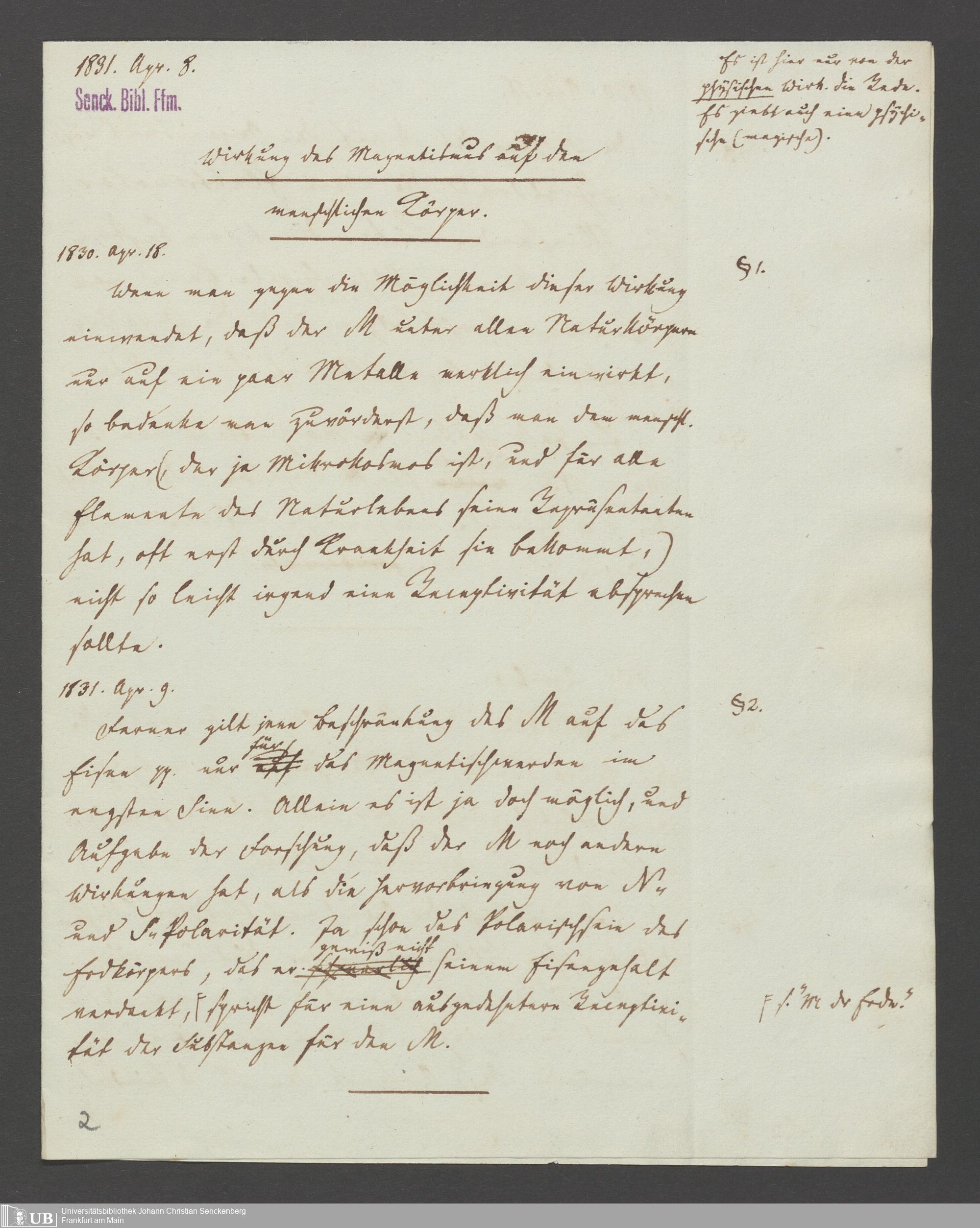 Na 83 Nachlass Christian Ernst Neeff, 67 - Wirkung des mineralischen Magnetismus auf organische Körper