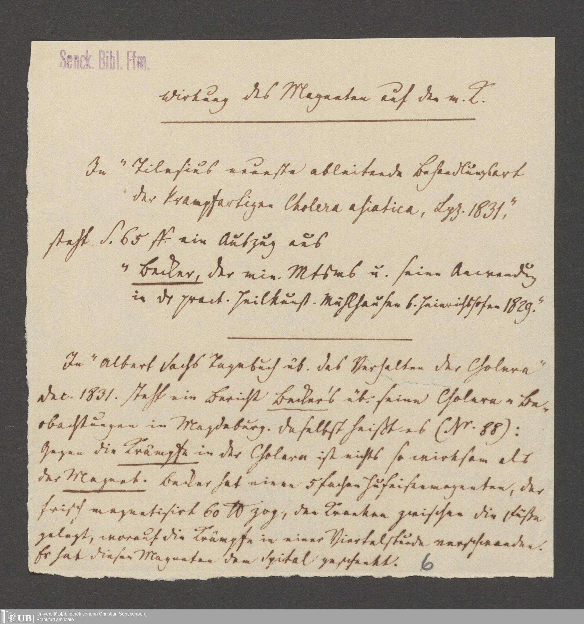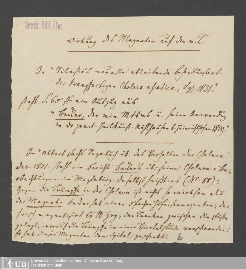 Na 83 Nachlass Christian Ernst Neeff, 67 - Wirkung des mineralischen Magnetismus auf organische Körper