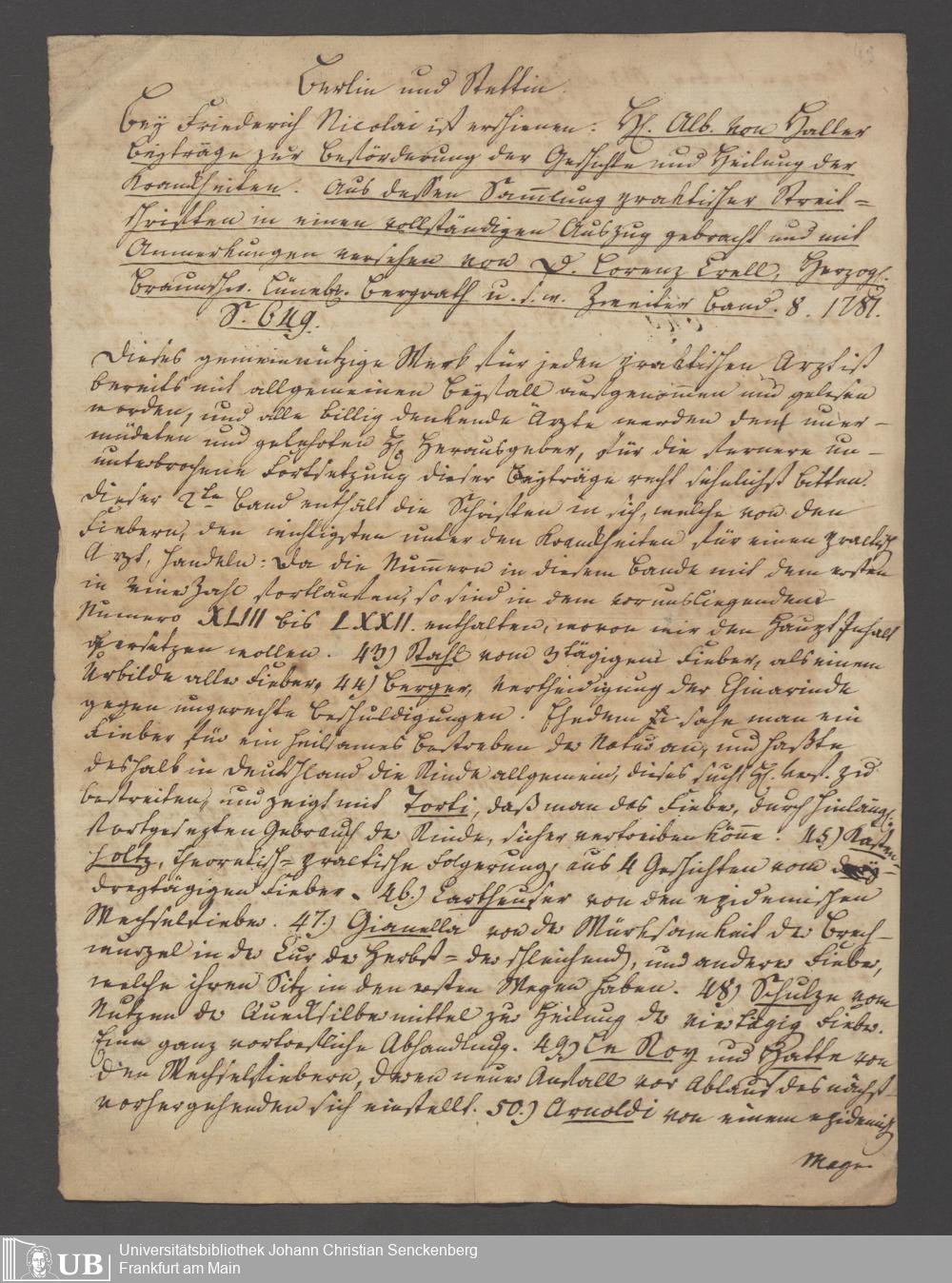 Nachlass Johann Christian Senckenberg