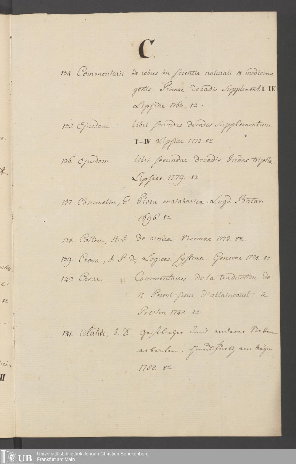 Nachlass Johann Christian Senckenberg