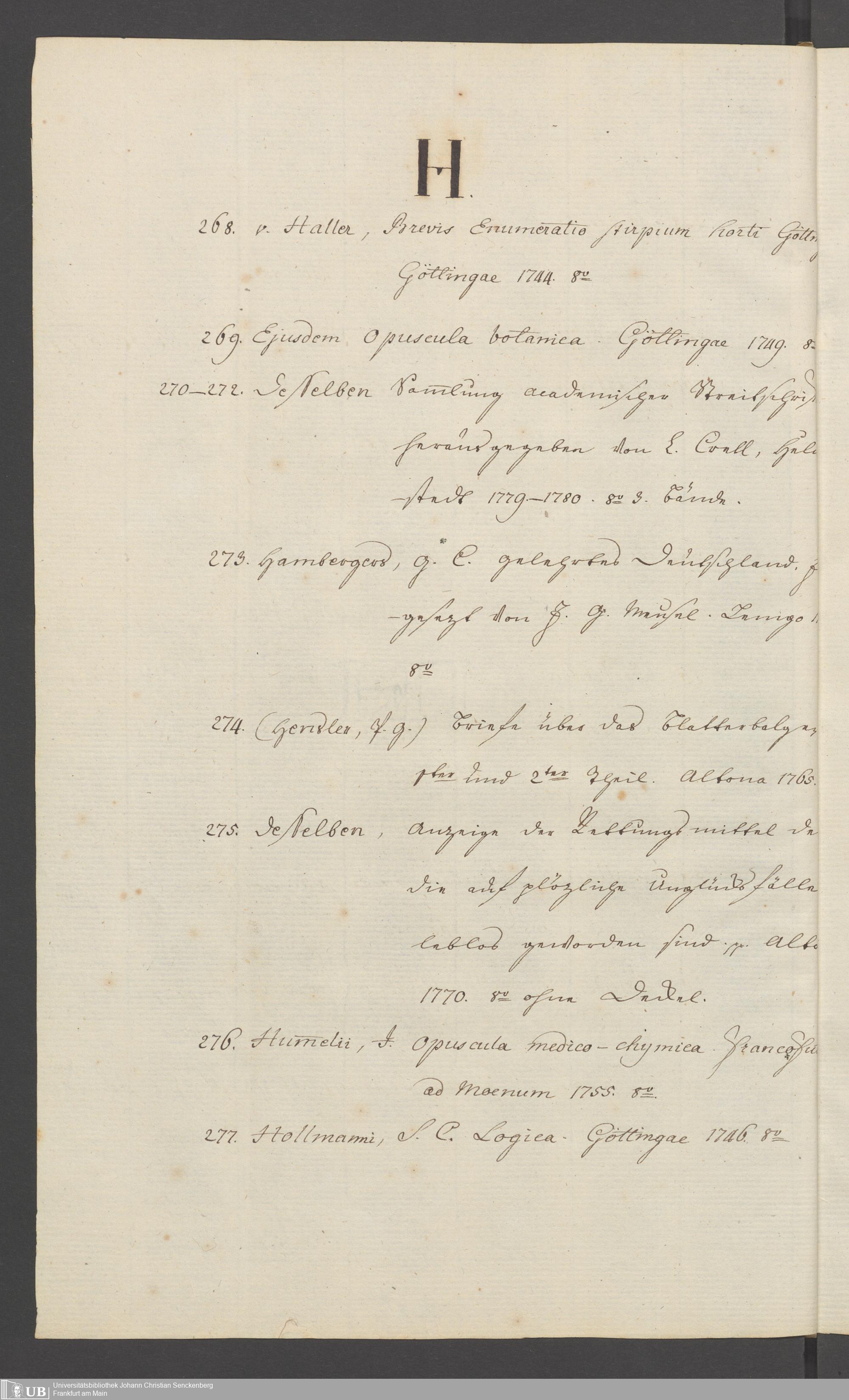 Nachlass Johann Christian Senckenberg