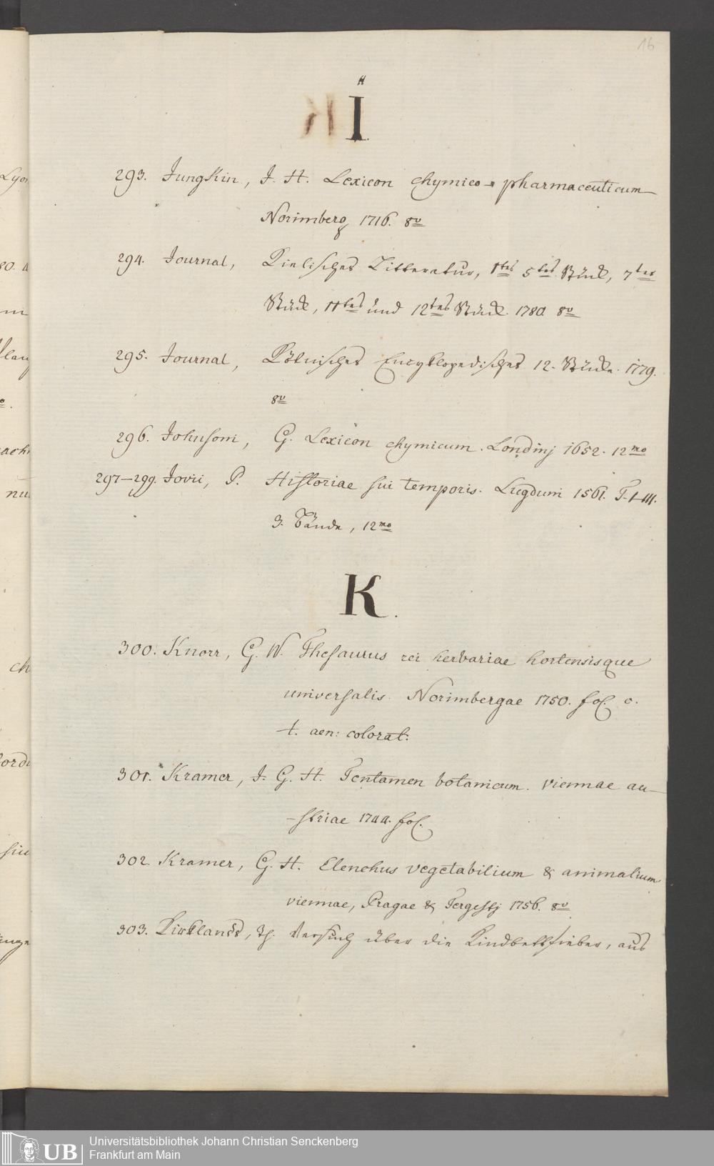 Nachlass Johann Christian Senckenberg