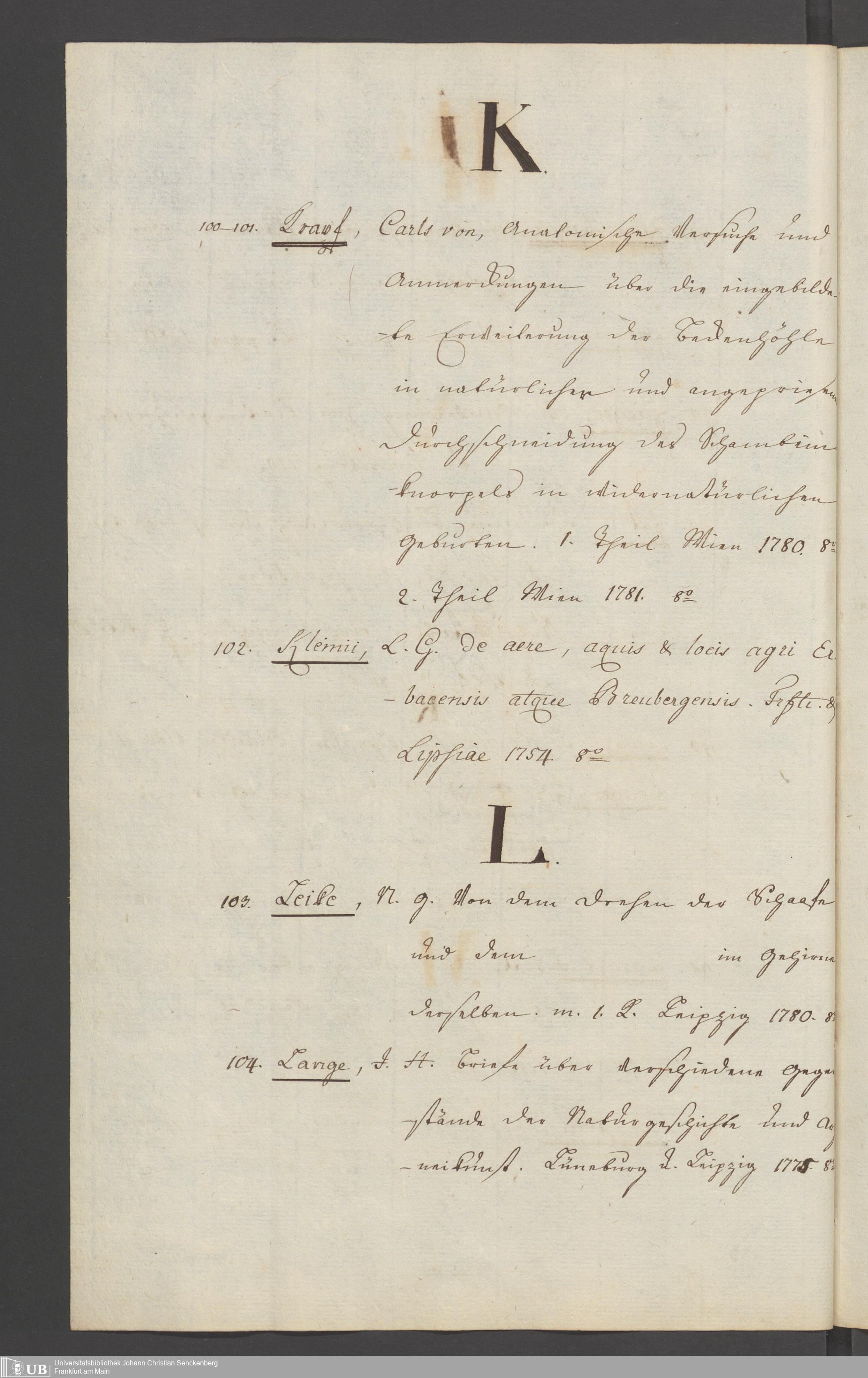Nachlass Johann Christian Senckenberg