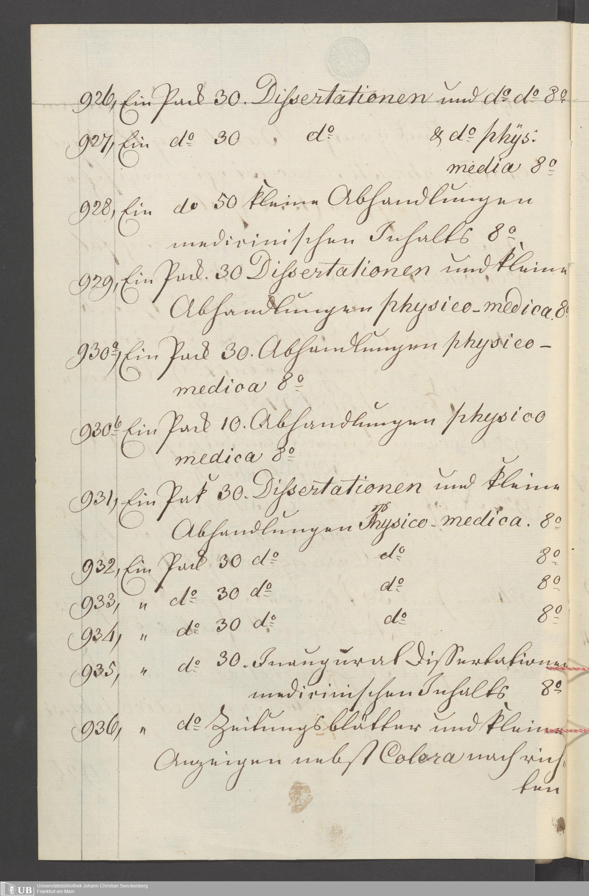 Nachlass Johann Christian Senckenberg
