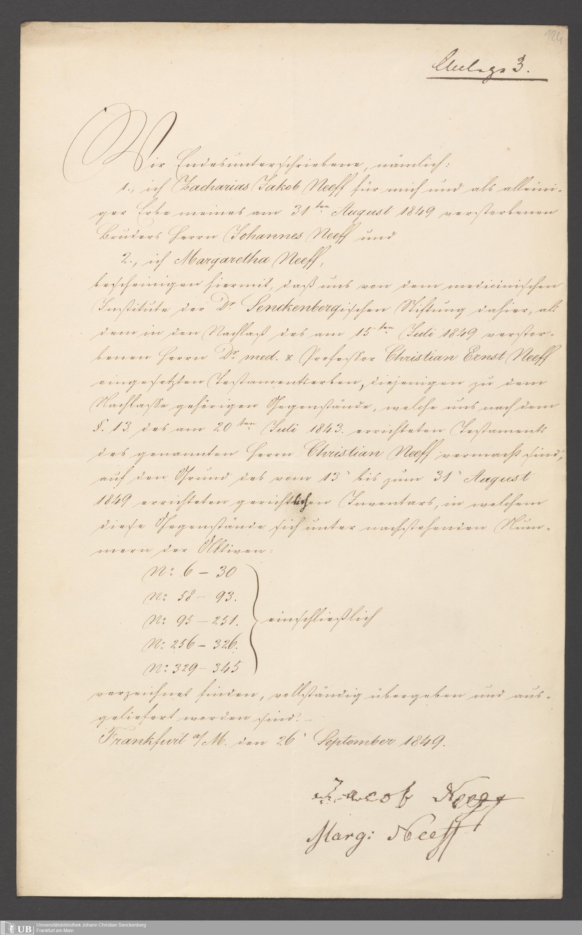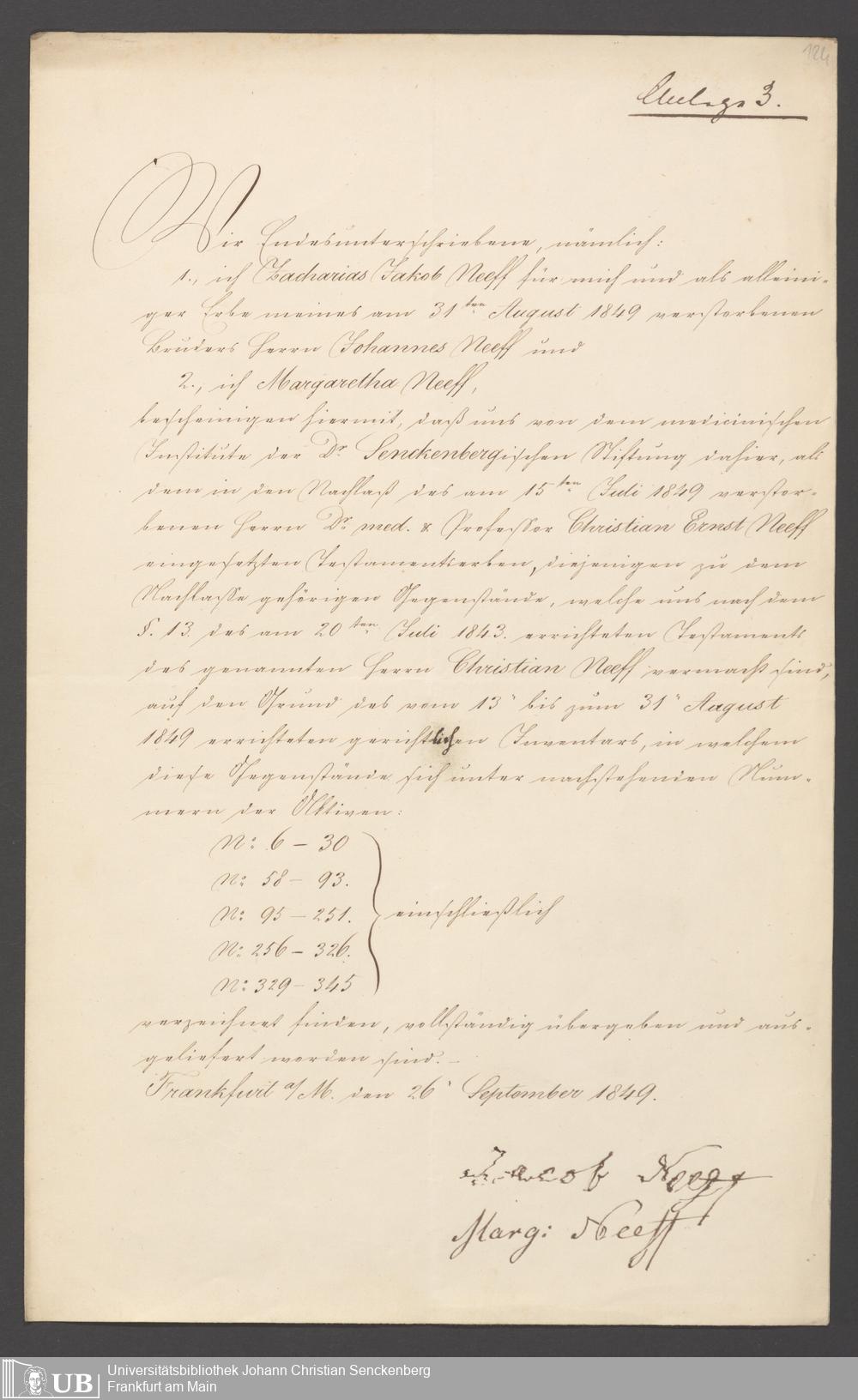 Nachlass Johann Christian Senckenberg