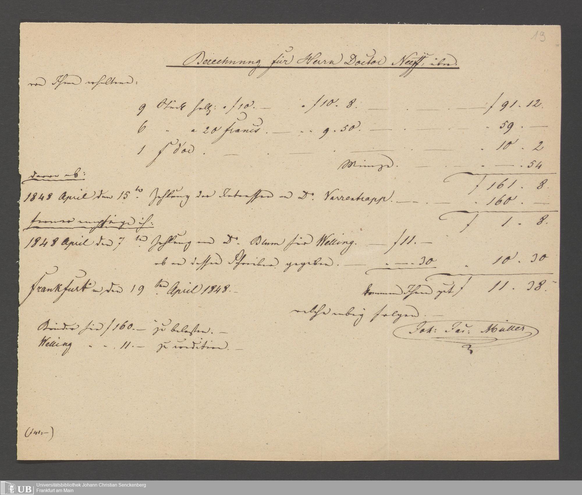Na 83 Nachlass Christian Ernst Neeff, 3 - Abrechnungen von Johann Jakob Müller für Christian Ernst Neeff