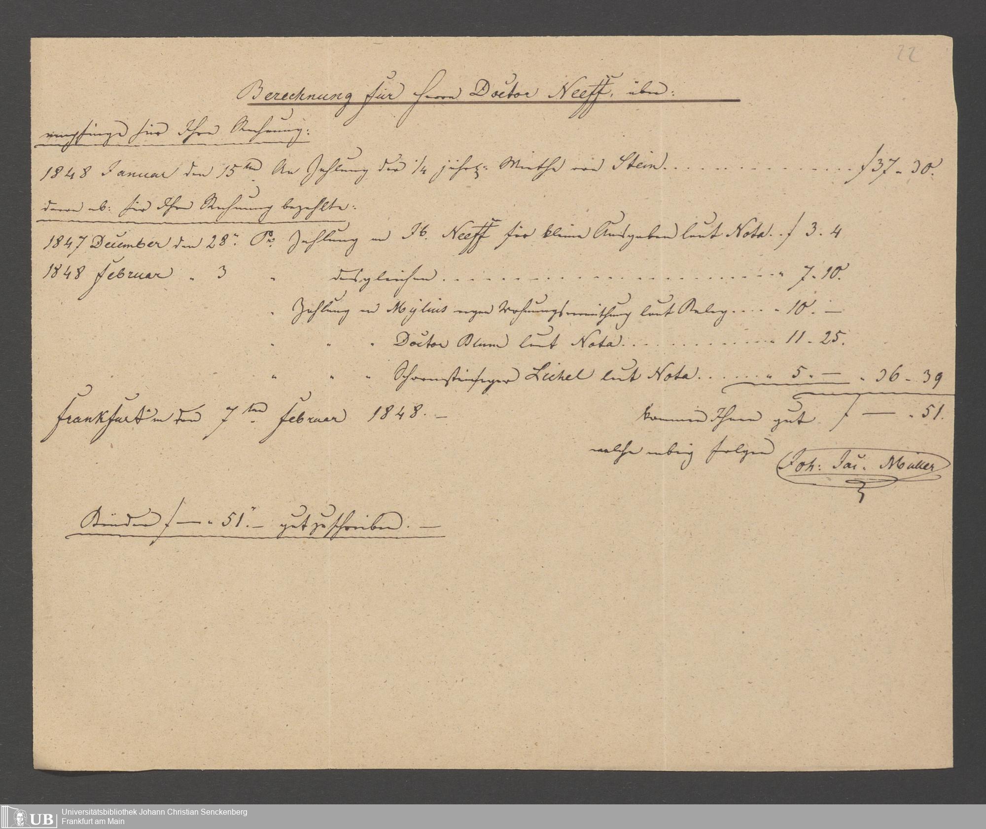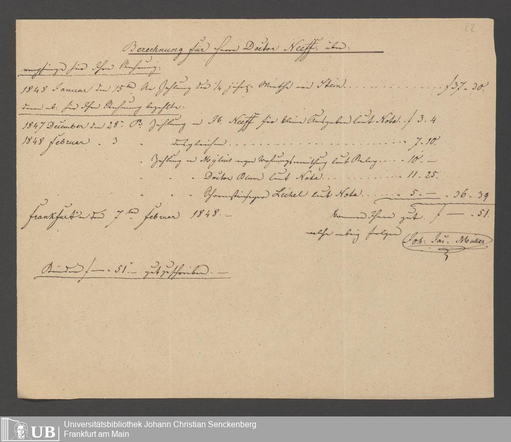 Na 83 Nachlass Christian Ernst Neeff, 3 - Abrechnungen von Johann Jakob Müller für Christian Ernst Neeff