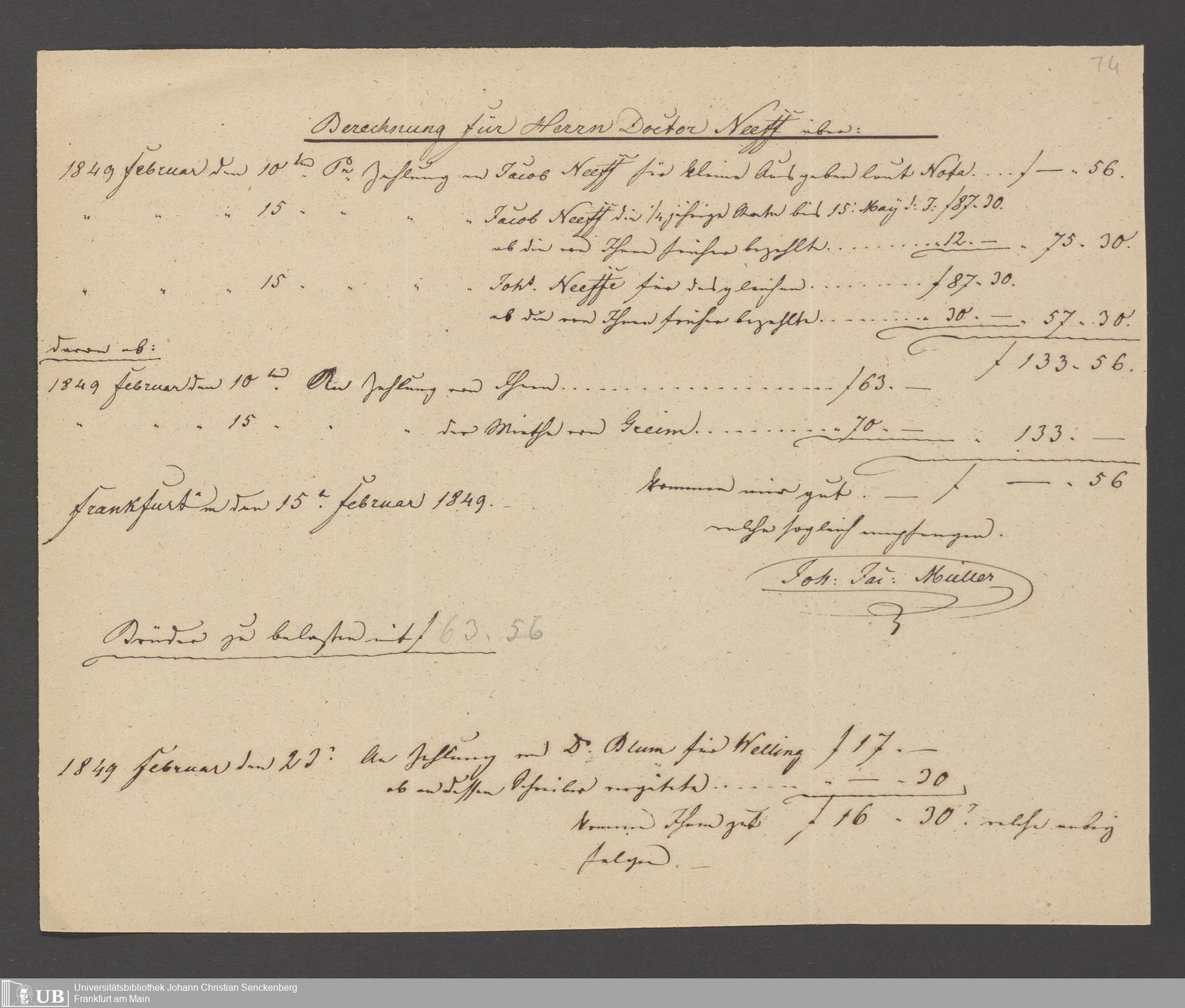 Na 83 Nachlass Christian Ernst Neeff, 3 - Abrechnungen von Johann Jakob Müller für Christian Ernst Neeff