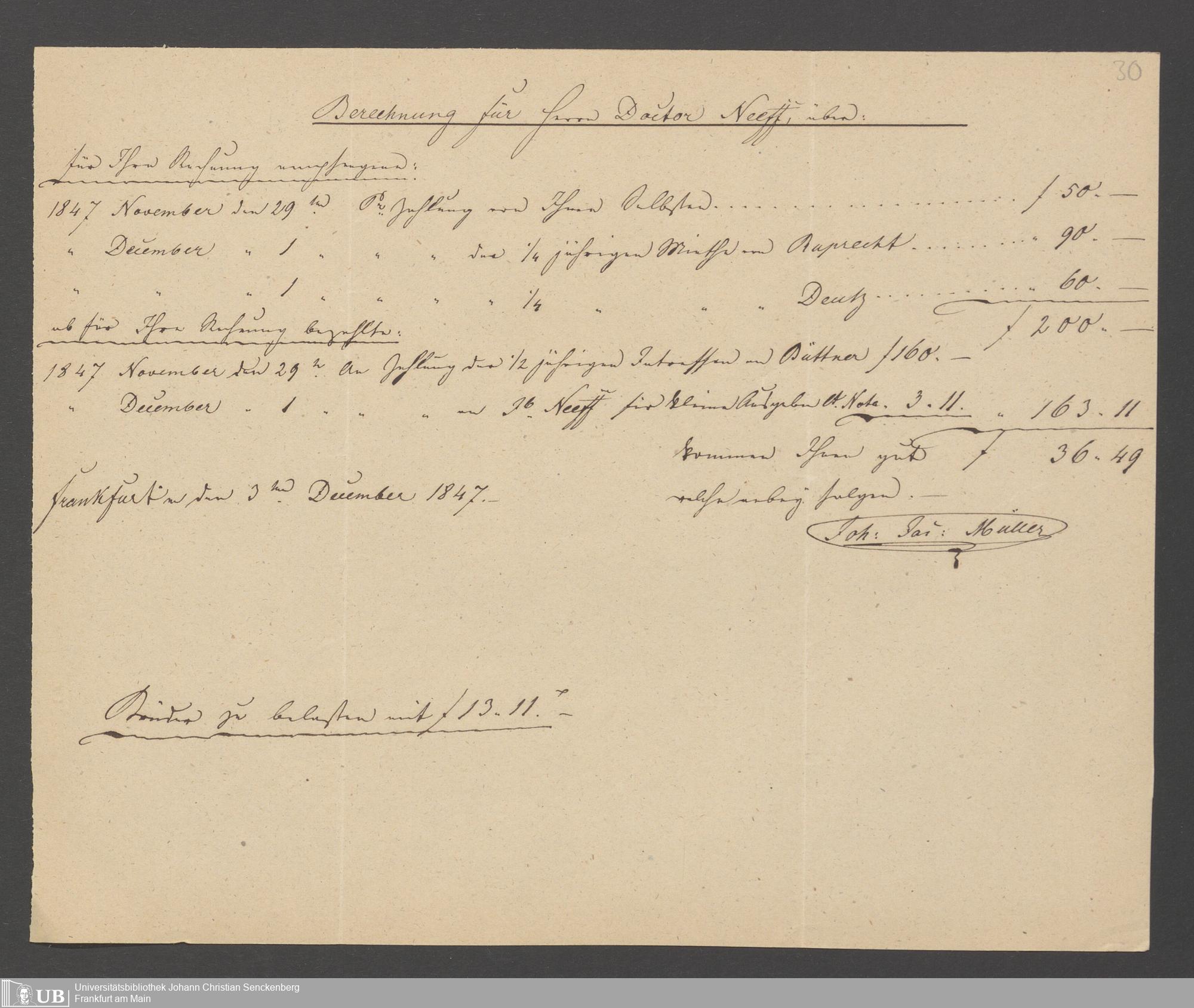 Na 83 Nachlass Christian Ernst Neeff, 3 - Abrechnungen von Johann Jakob Müller für Christian Ernst Neeff