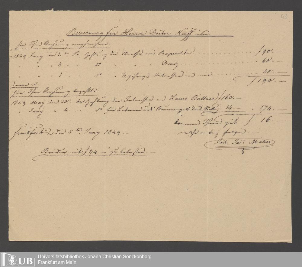 Na 83 Nachlass Christian Ernst Neeff, 3 - Abrechnungen von Johann Jakob Müller für Christian Ernst Neeff