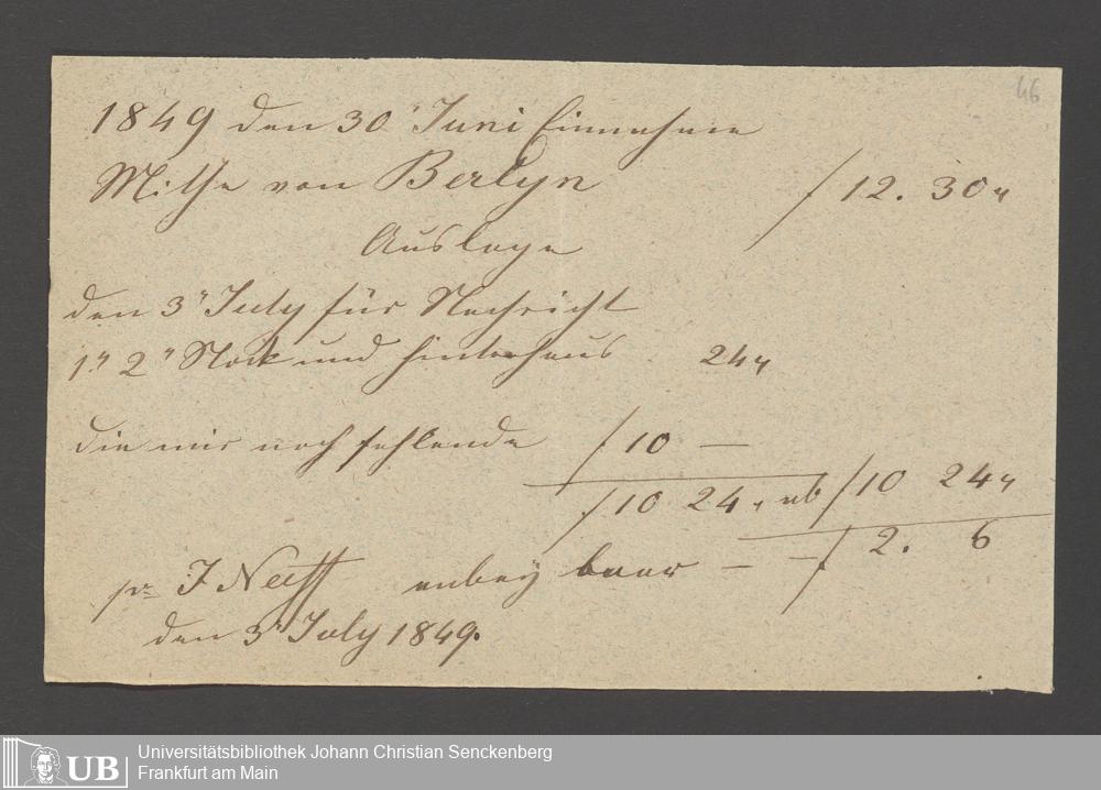 Na 83 Nachlass Christian Ernst Neeff, 3 - Abrechnungen von Johann Jakob Müller für Christian Ernst Neeff
