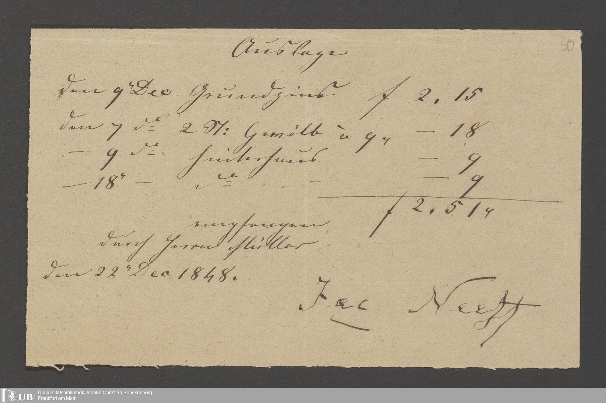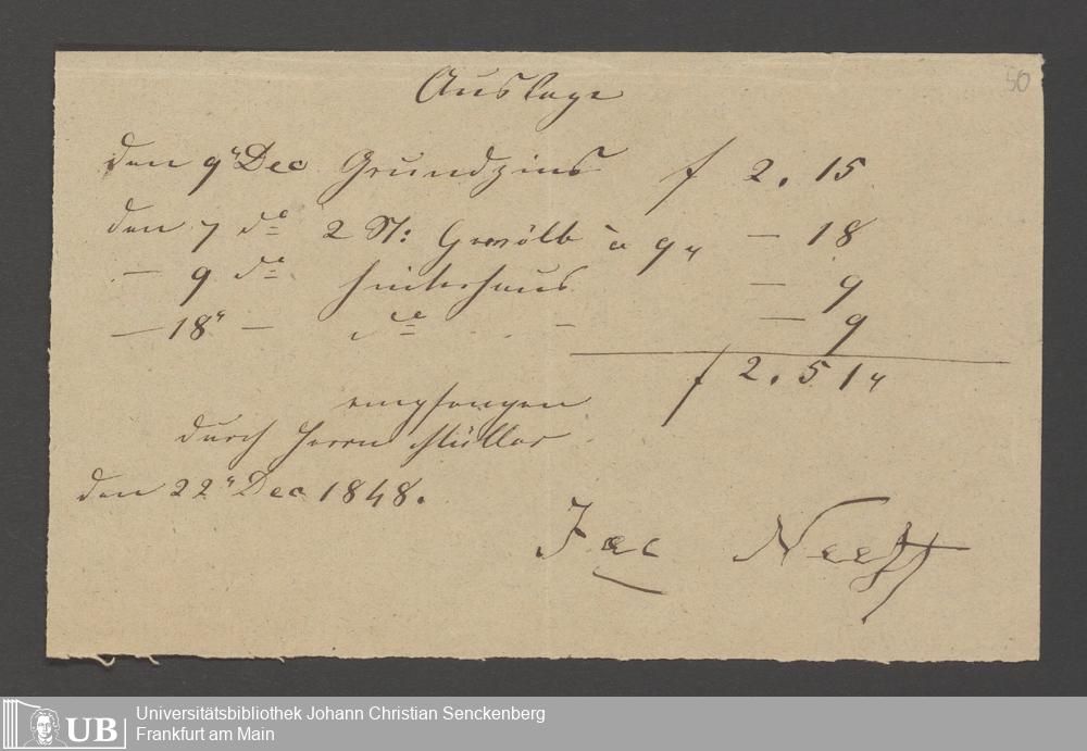 Na 83 Nachlass Christian Ernst Neeff, 3 - Abrechnungen von Johann Jakob Müller für Christian Ernst Neeff