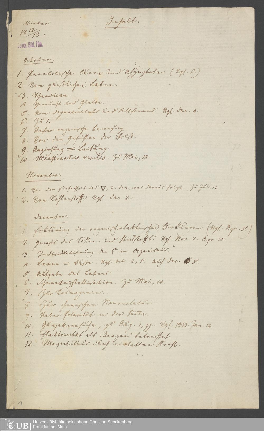 Na 83 Nachlass Christian Ernst Neeff, 12 - Aufsätze und Notizen über Elektrizität (Oktober, 1842 - Februar, 1843) (p.)