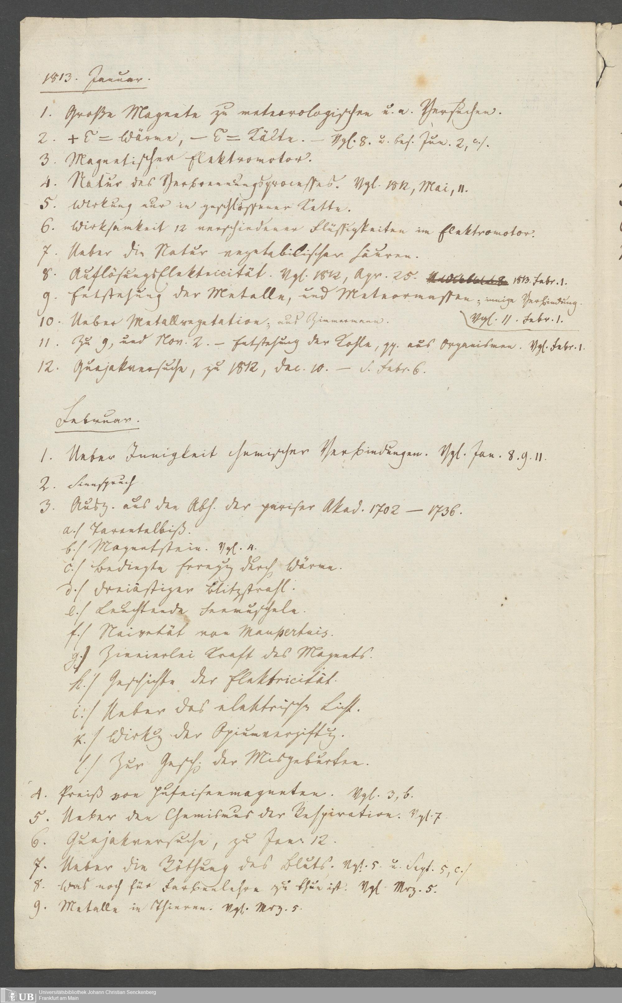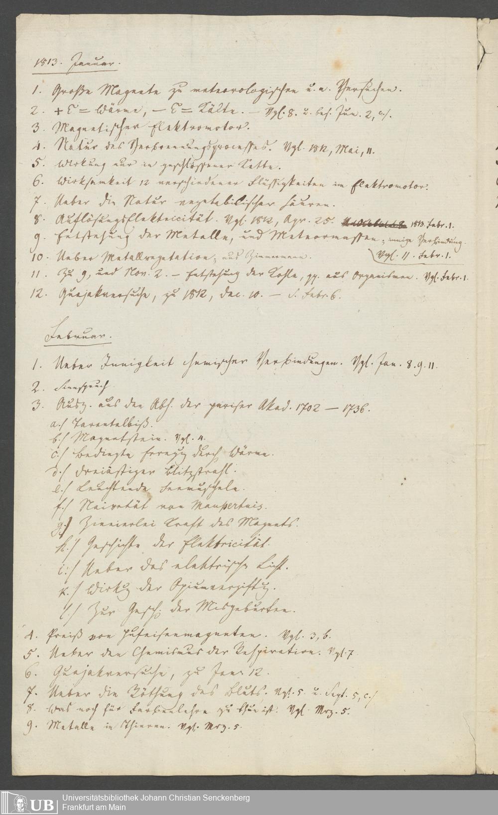 Na 83 Nachlass Christian Ernst Neeff, 12 - Aufsätze und Notizen über Elektrizität (Oktober, 1842 - Februar, 1843) (p.)