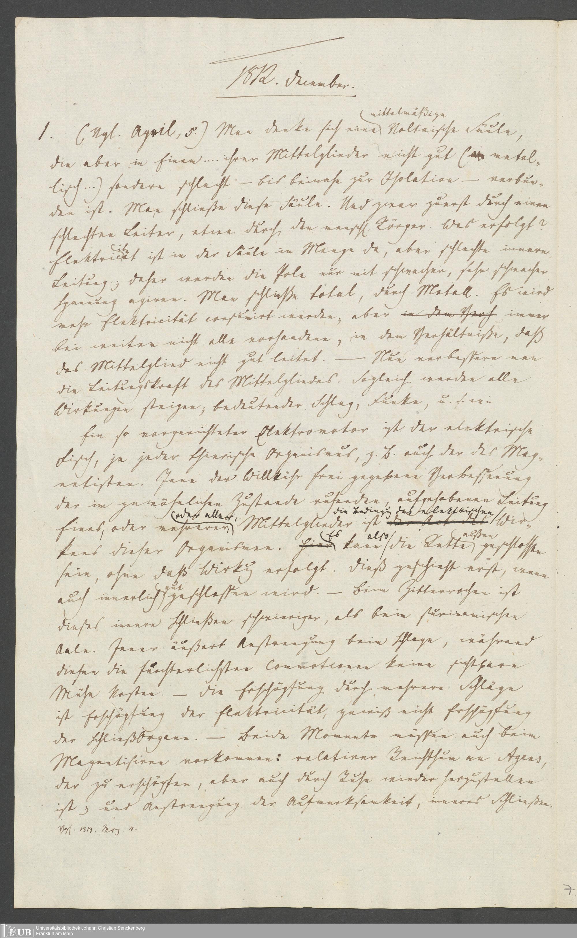 Na 83 Nachlass Christian Ernst Neeff, 12 - Aufsätze und Notizen über Elektrizität (Oktober, 1842 - Februar, 1843) (p.)