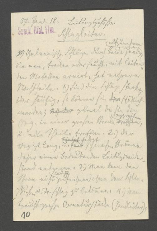 Na 83 Nachlass Christian Ernst Neeff, 17 - Über elektrische (wandelt den Strom in eine andere Energieform um) Batterien und Leitungsflüssigkeiten (p.)