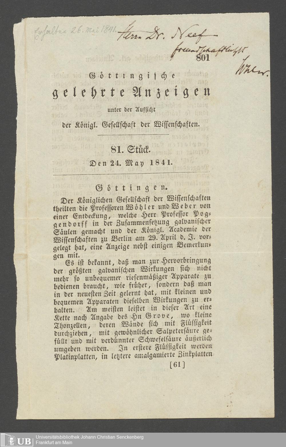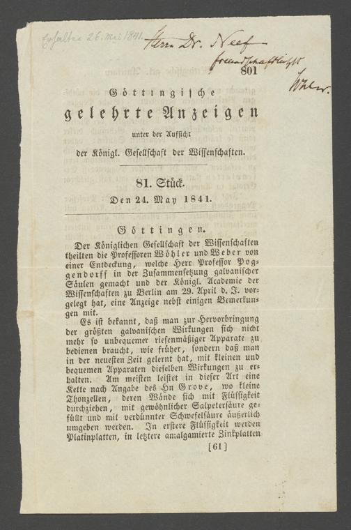 Na 83 Nachlass Christian Ernst Neeff, 17 - Über elektrische (wandelt den Strom in eine andere Energieform um) Batterien und Leitungsflüssigkeiten (p.)