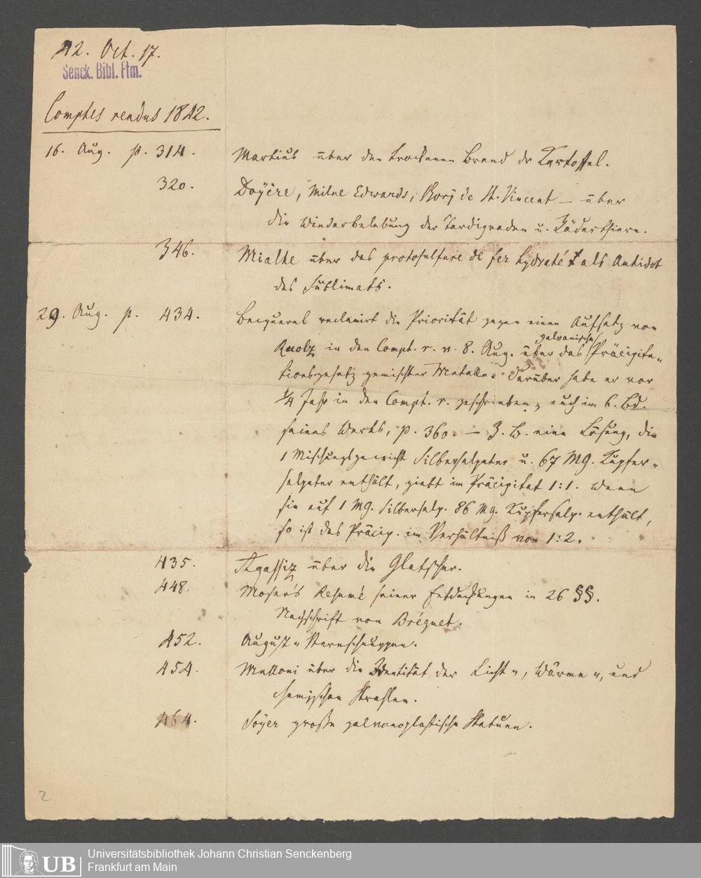 Na 83 Nachlass Christian Ernst Neeff, 20 - Brief an den Physikalischen Verein sowie Handzettel