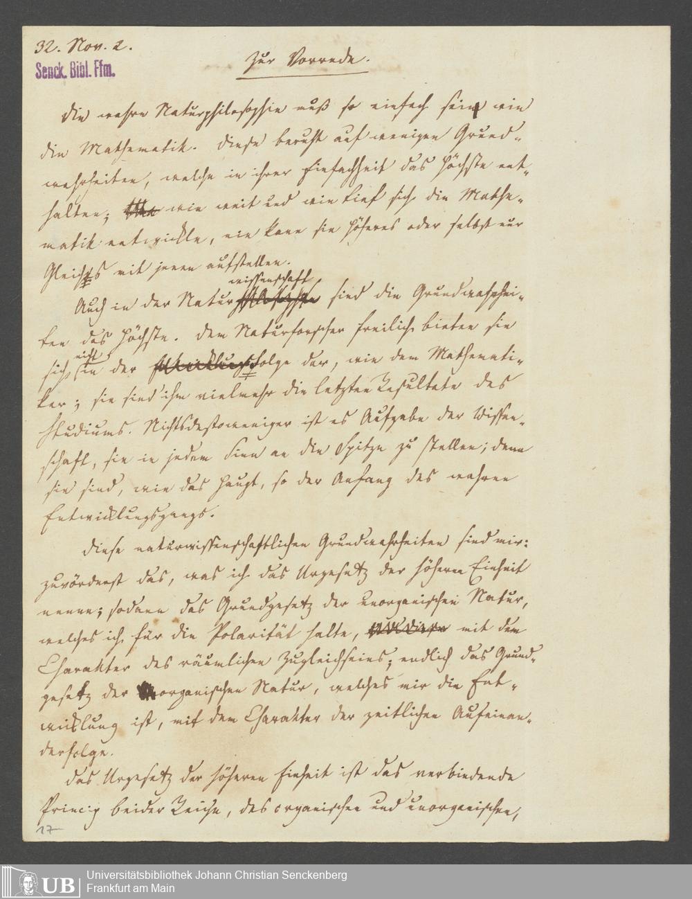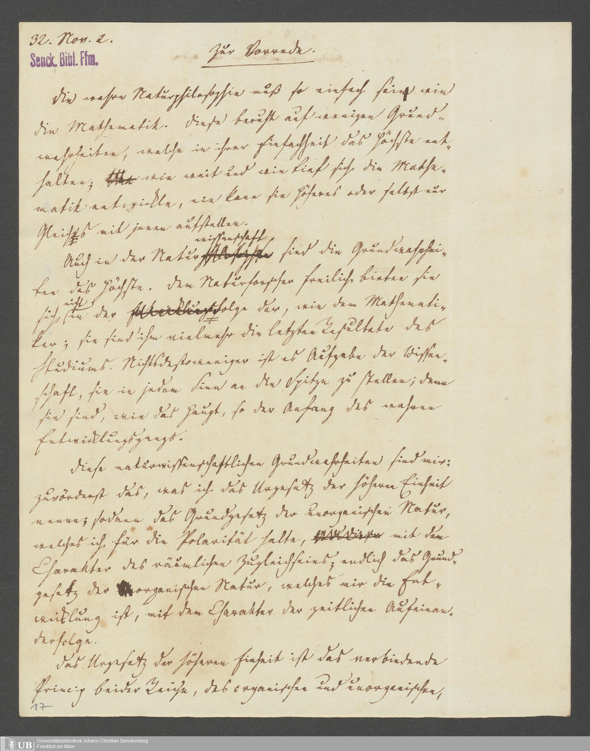Na 83 Nachlass Christian Ernst Neeff, 20 - Brief an den Physikalischen Verein sowie Handzettel