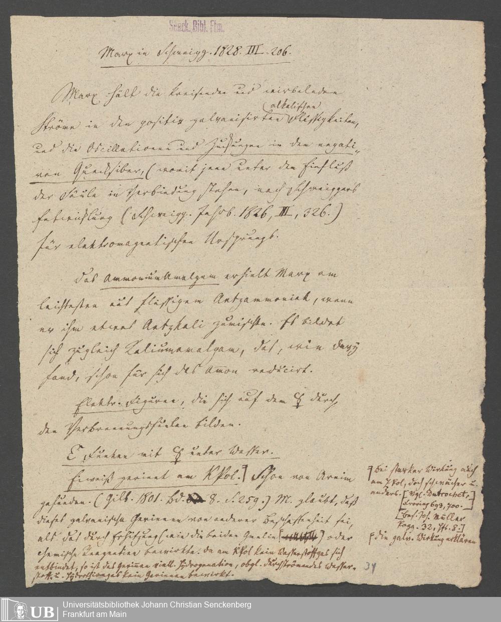 Na 83 Nachlass Christian Ernst Neeff, 20 - Brief an den Physikalischen Verein sowie Handzettel