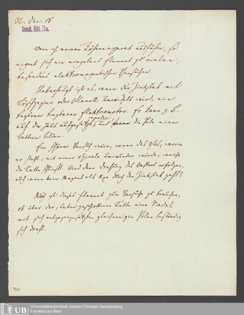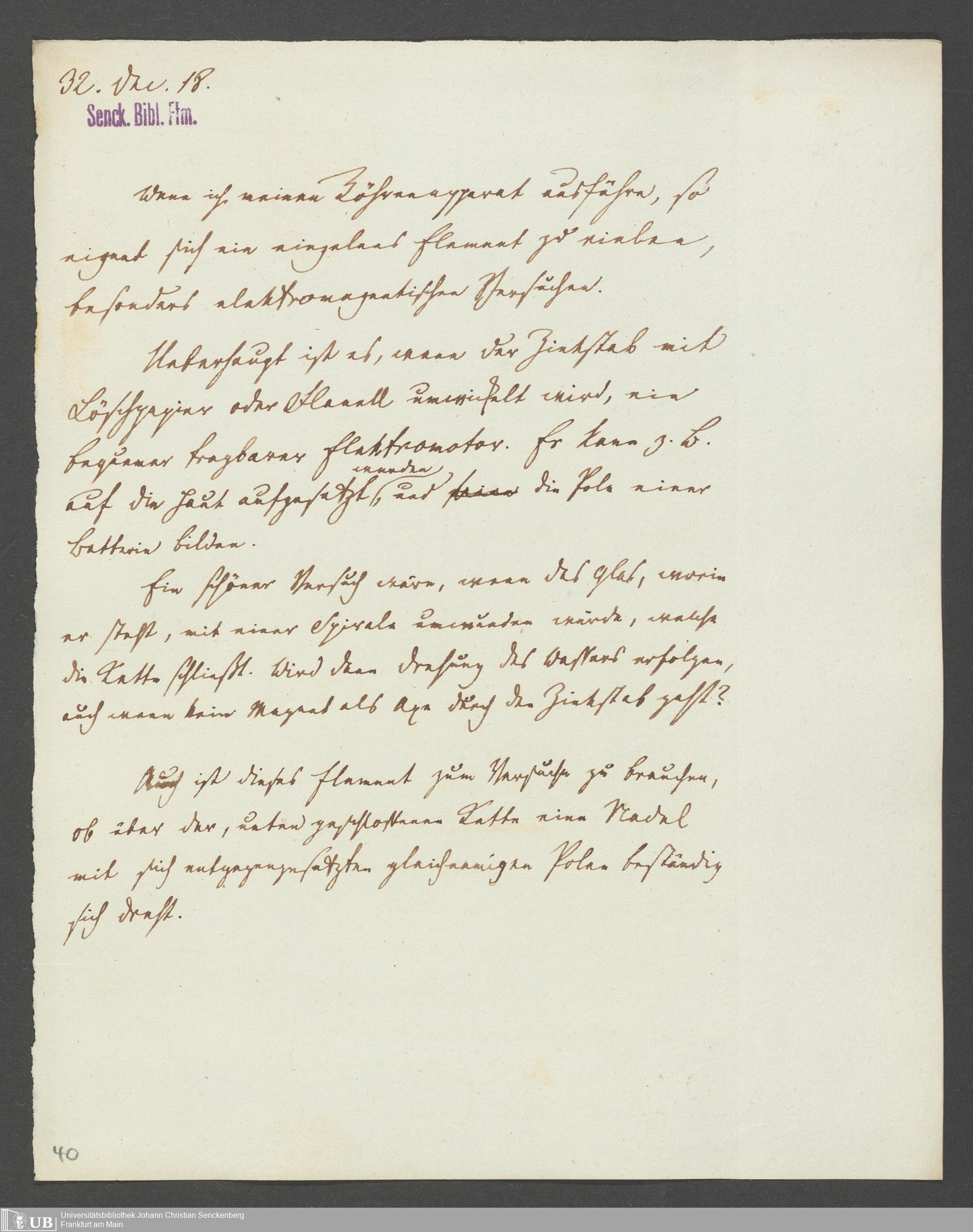 Na 83 Nachlass Christian Ernst Neeff, 20 - Brief an den Physikalischen Verein sowie Handzettel