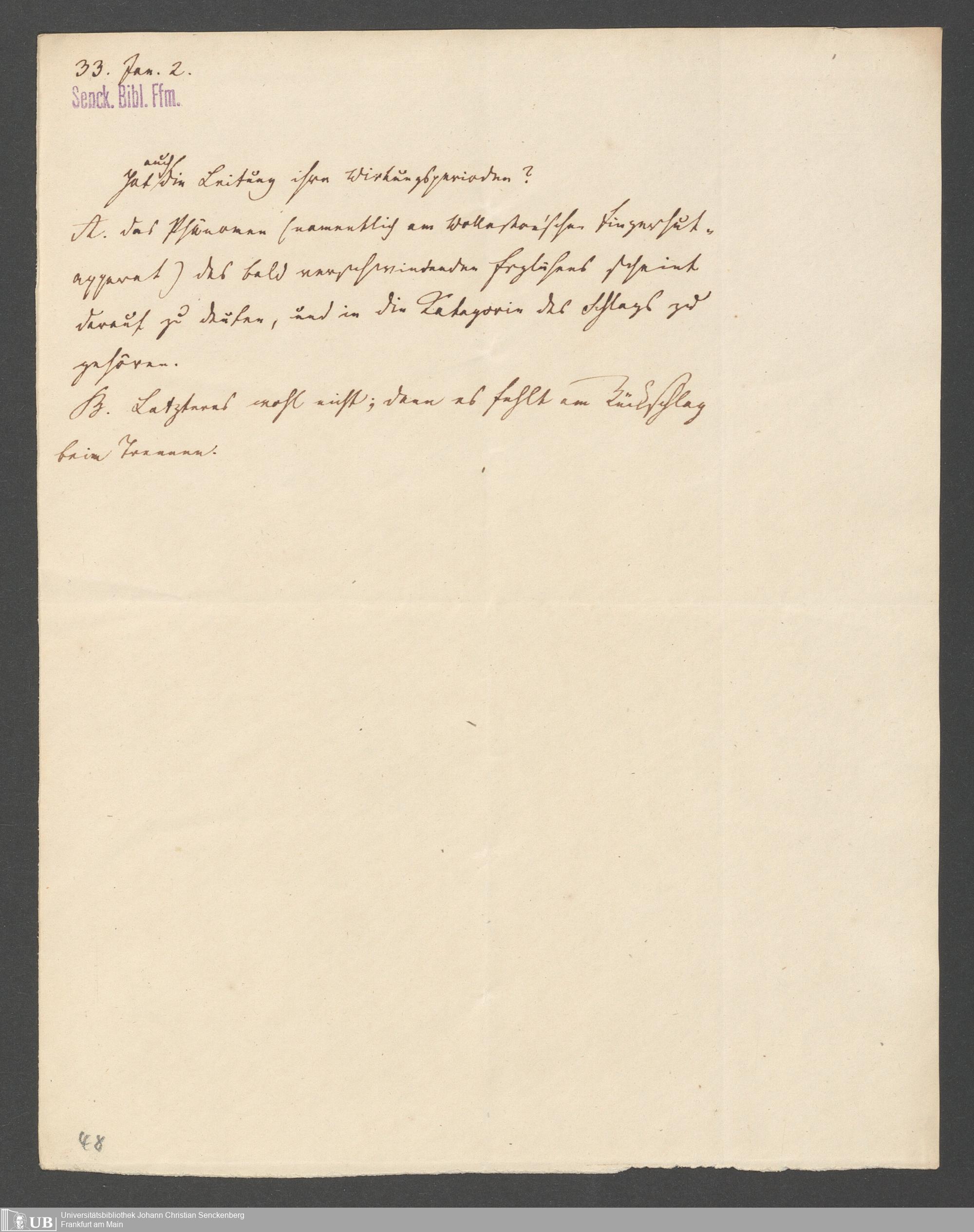 Na 83 Nachlass Christian Ernst Neeff, 20 - Brief an den Physikalischen Verein sowie Handzettel