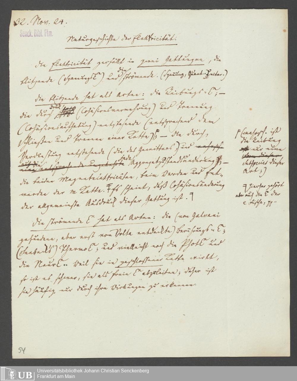 Na 83 Nachlass Christian Ernst Neeff, 20 - Brief an den Physikalischen Verein sowie Handzettel