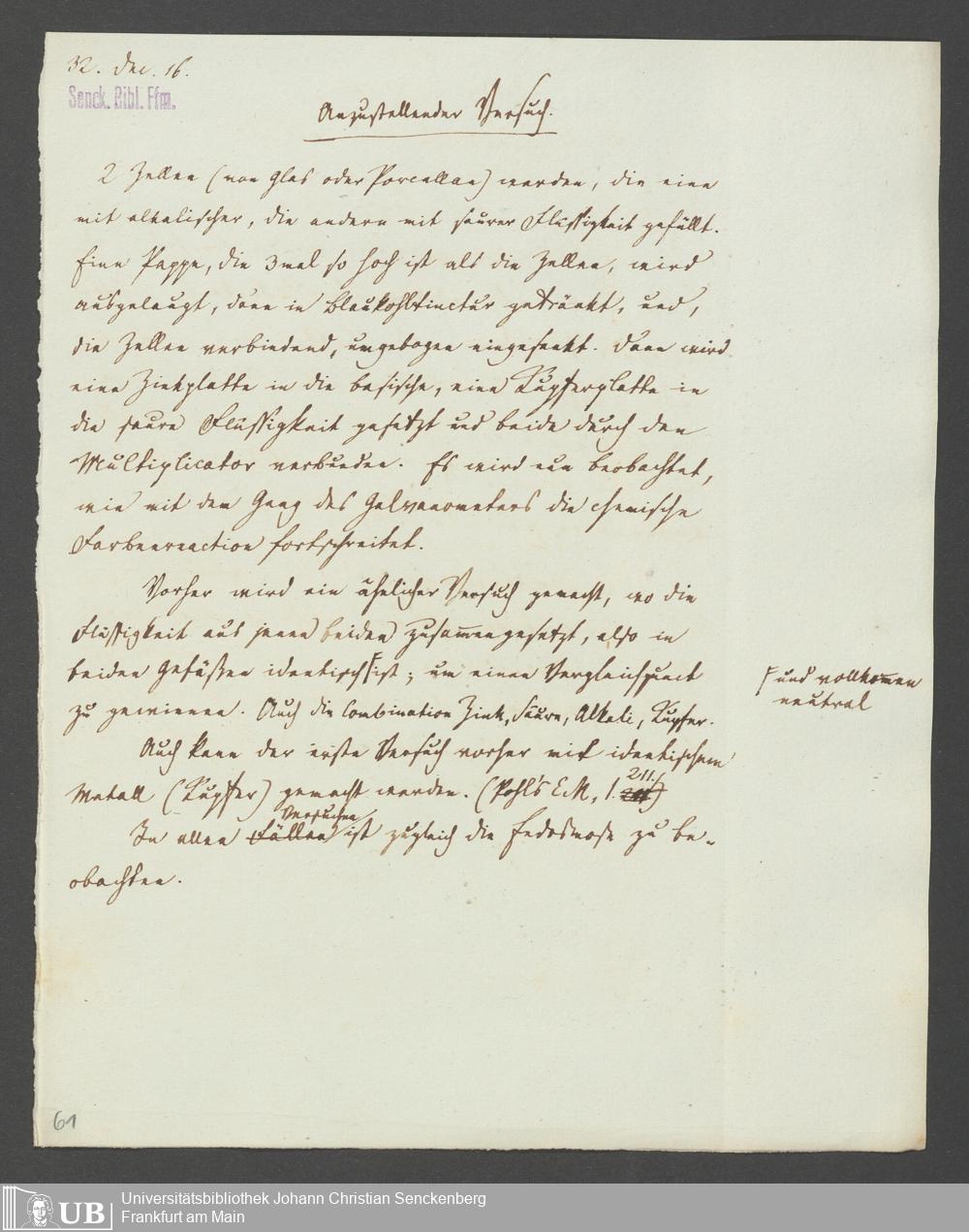 Na 83 Nachlass Christian Ernst Neeff, 20 - Brief an den Physikalischen Verein sowie Handzettel