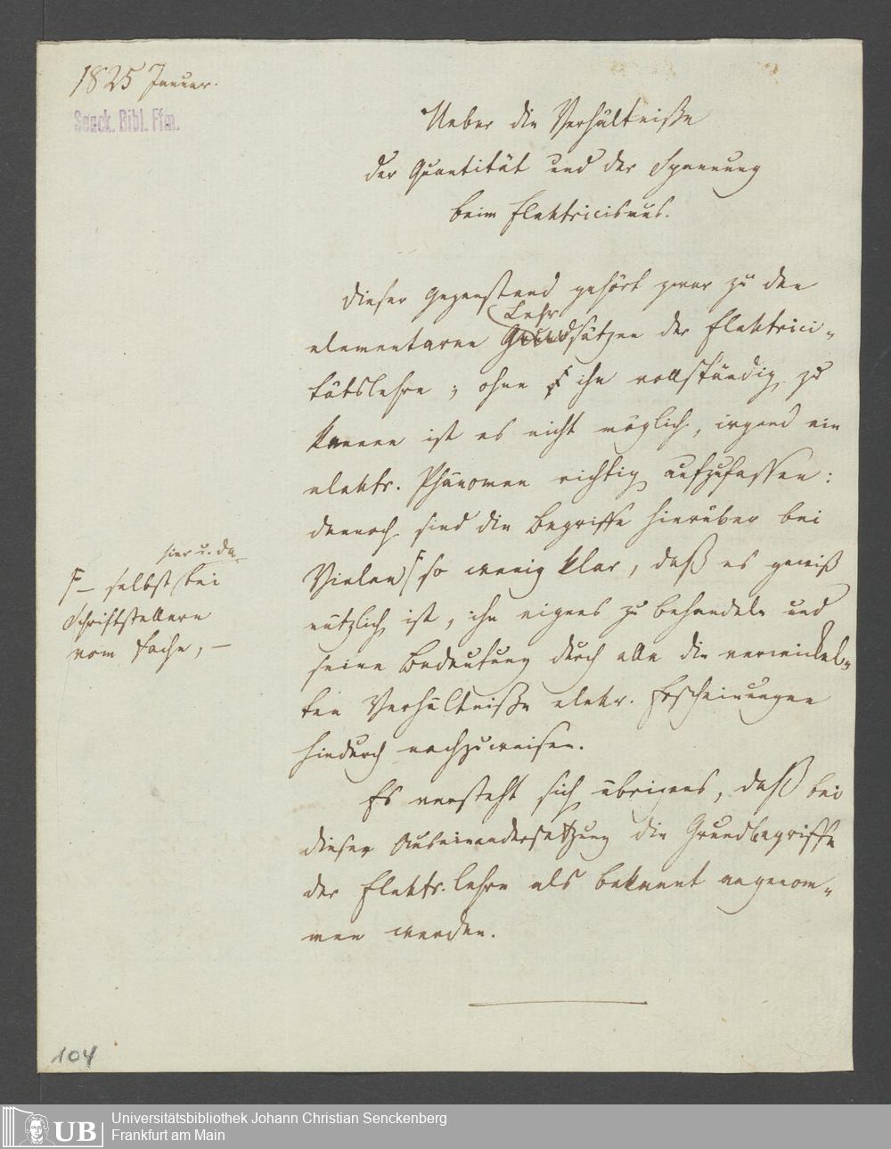 Na 83 Nachlass Christian Ernst Neeff, 20 - Brief an den Physikalischen Verein sowie Handzettel