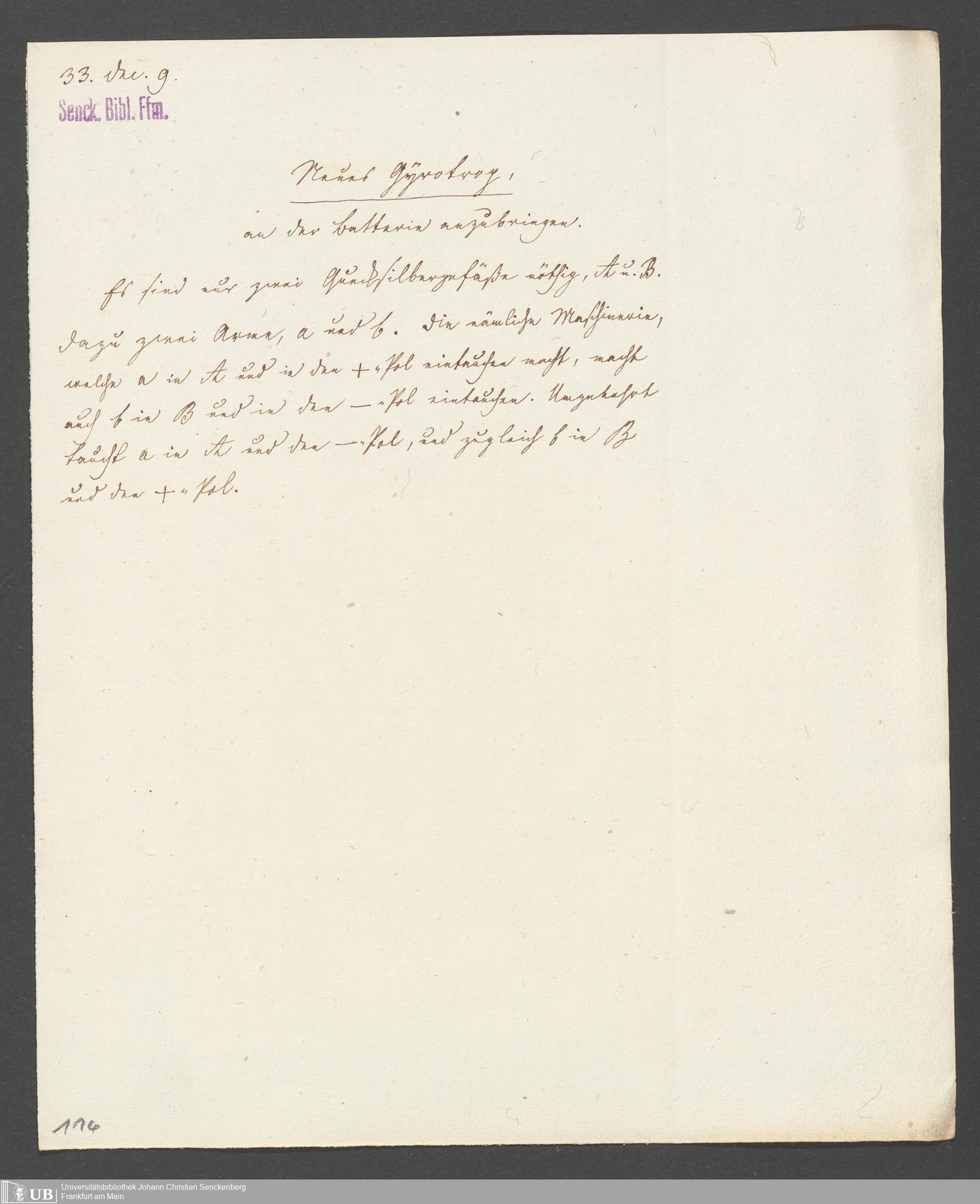 Na 83 Nachlass Christian Ernst Neeff, 20 - Brief an den Physikalischen Verein sowie Handzettel
