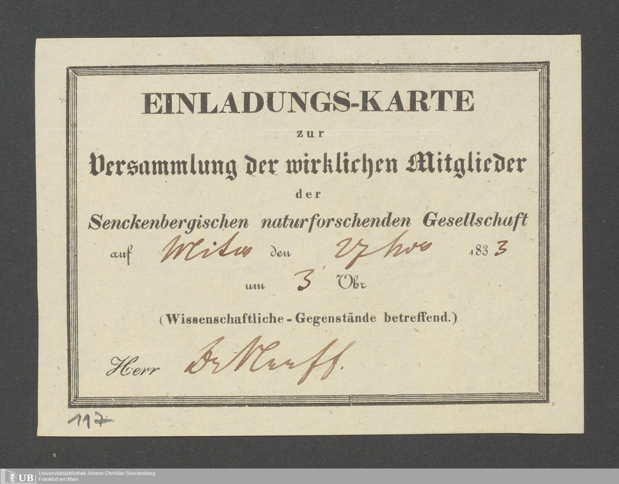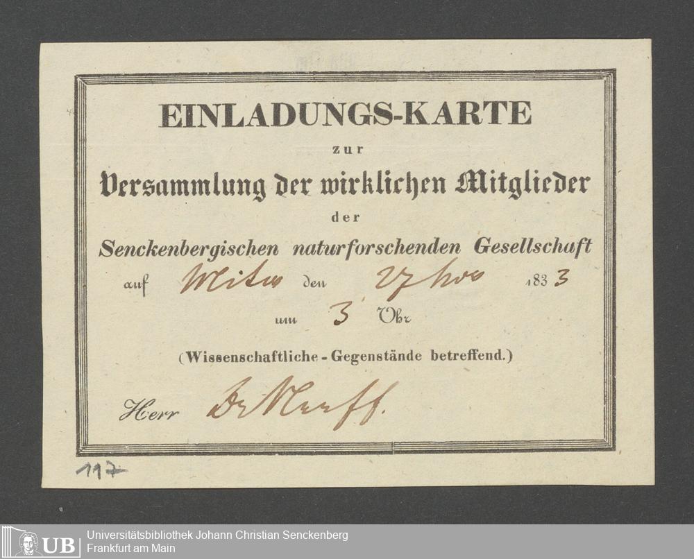 Na 83 Nachlass Christian Ernst Neeff, 20 - Brief an den Physikalischen Verein sowie Handzettel