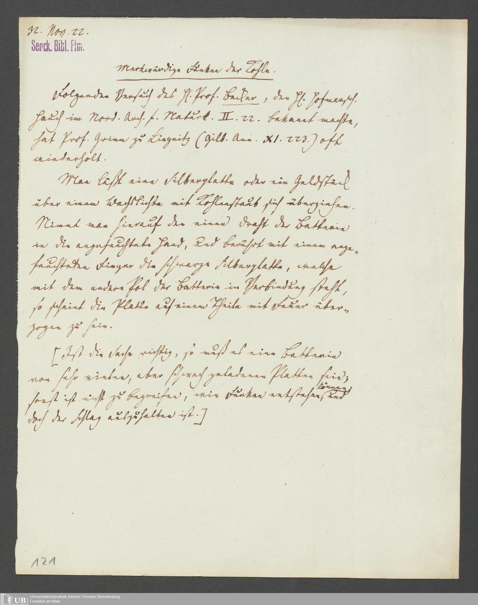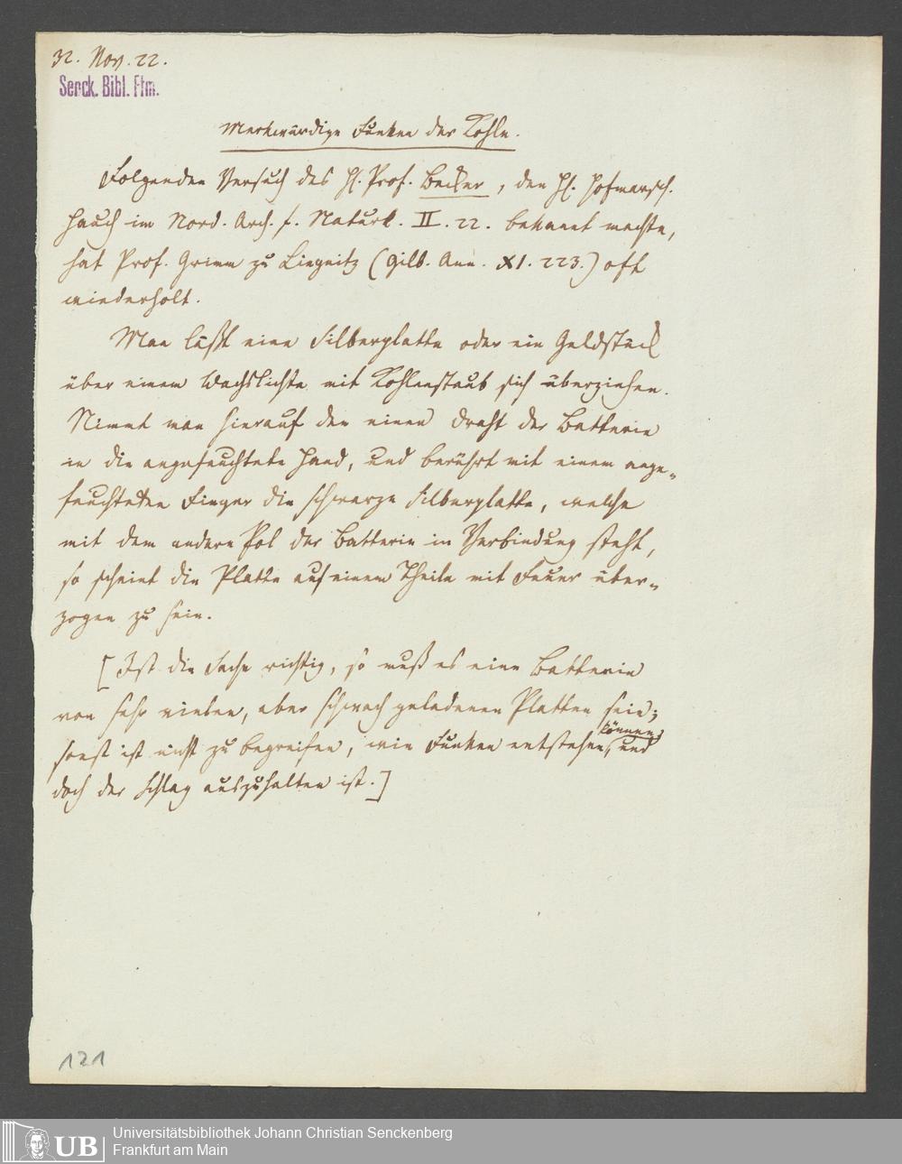 Na 83 Nachlass Christian Ernst Neeff, 20 - Brief an den Physikalischen Verein sowie Handzettel